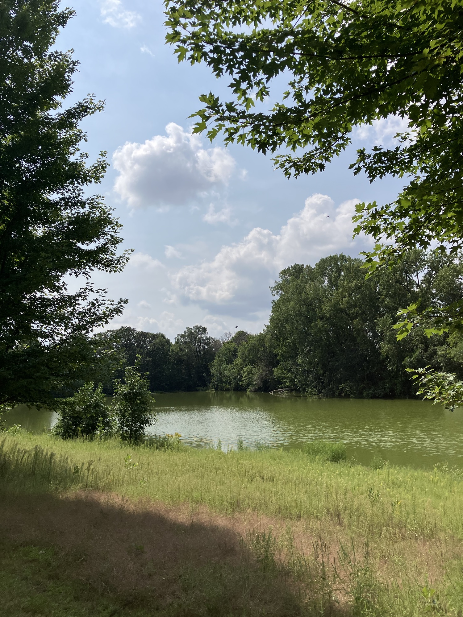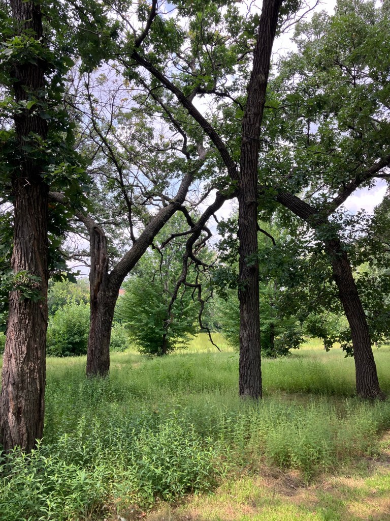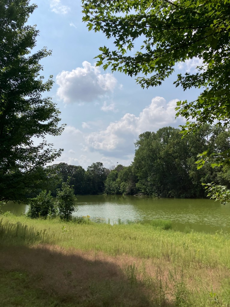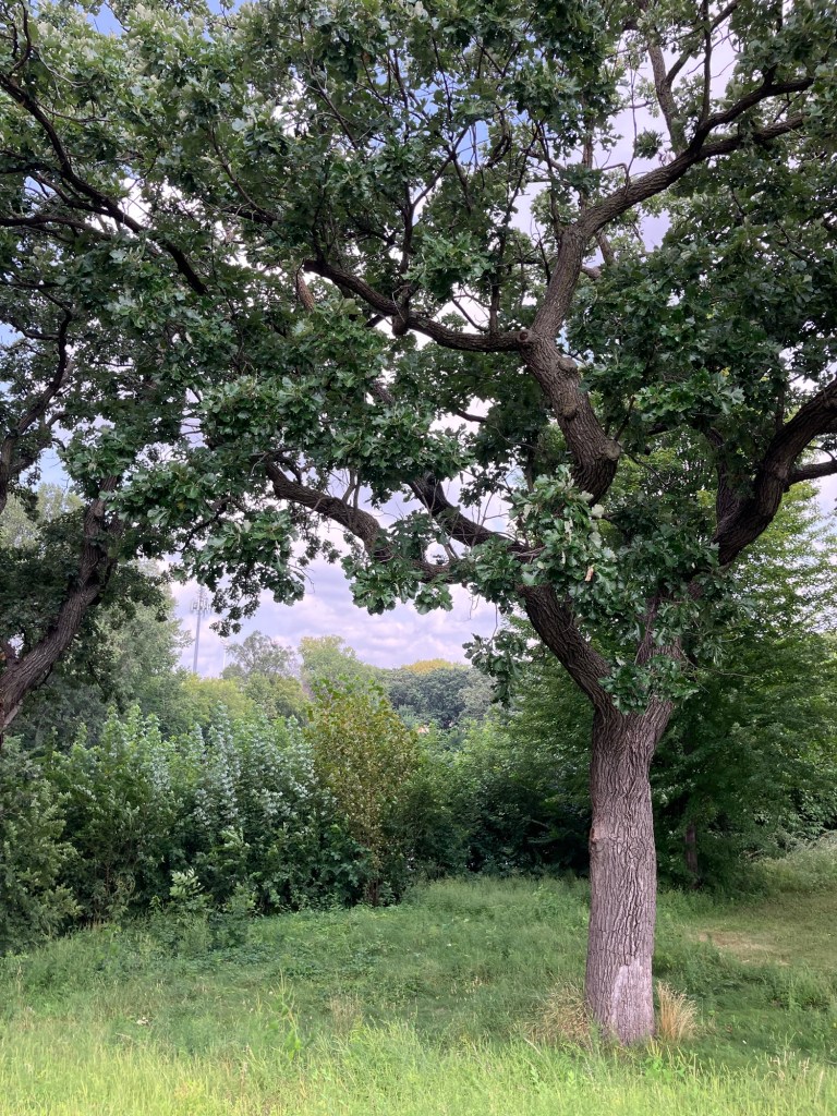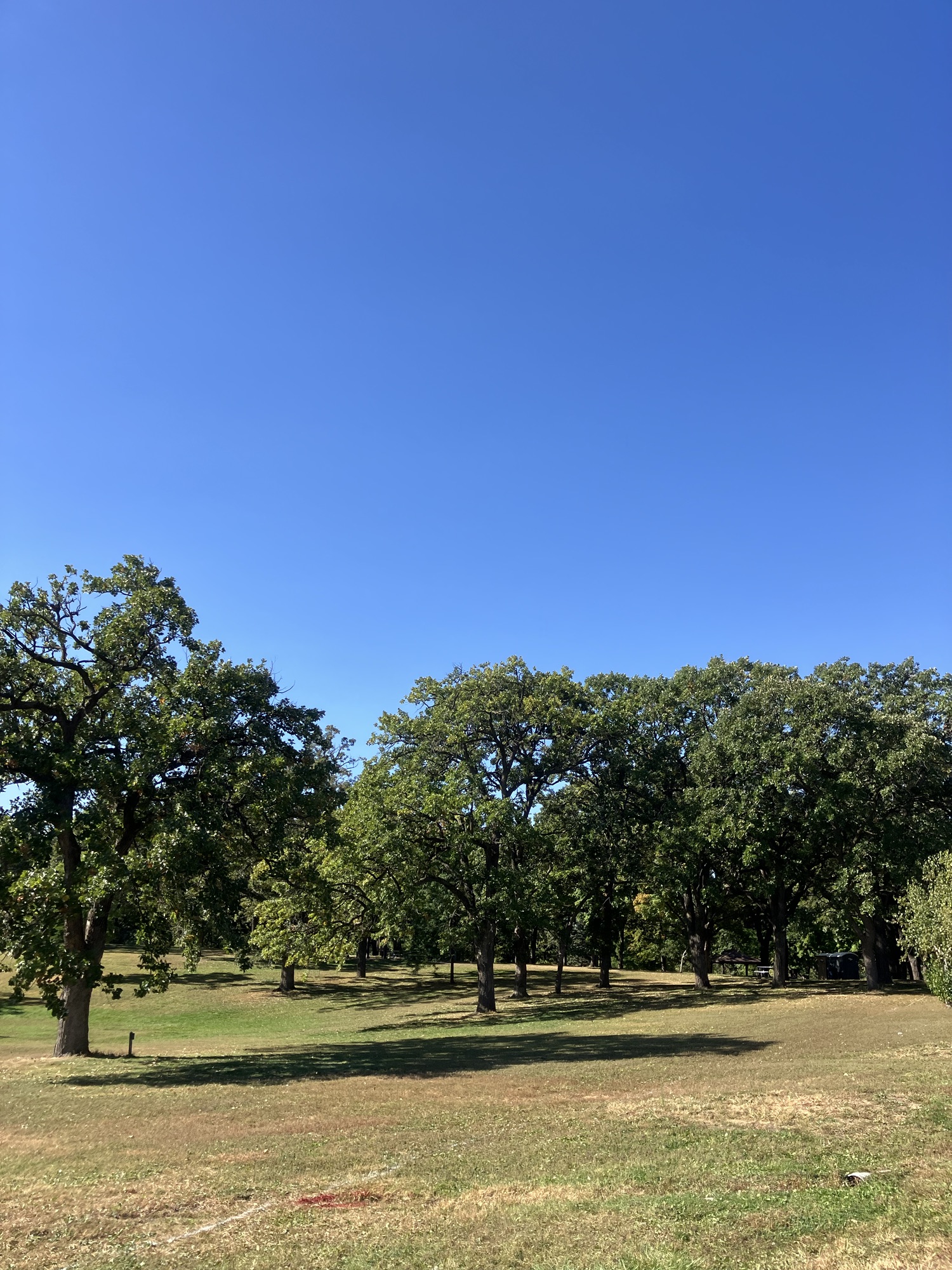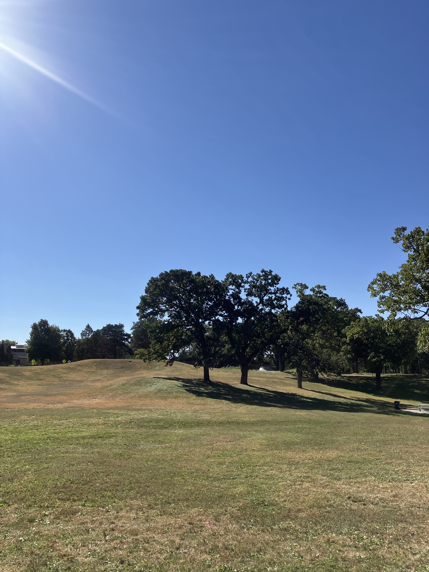 Augsburg Park in Richfield, MN is sort of a classic park, featuring rolling hills of manicured grass and oaks with a forked path between the north and south edges of the block. The east end of the park features a public library (closed for construction) and a small community center in the northeast corner. There is an ever-busy “Adventure Park” playground with a sort of artificial “nature” theme, but it does have reasonably accessible play equipment at least. There’s even a small section of colorful statues that are vaguely appropriate for toddlers to climb on. A redeeming feature of this park is found down the hill from the central path, where a grassy mowed path creates a beautiful sort of loop along the lake before rejoining the pavement. Overall, it’s a fine park for a shady picnic and a short walk for a toddler. I recommend parking in the south lot.