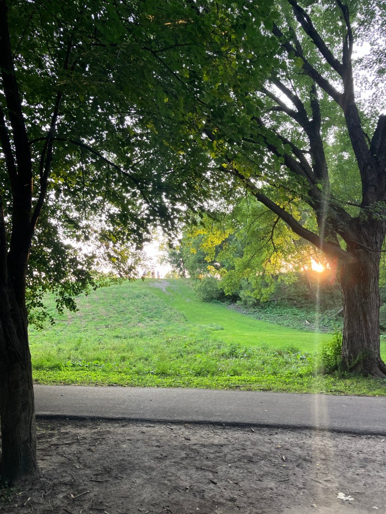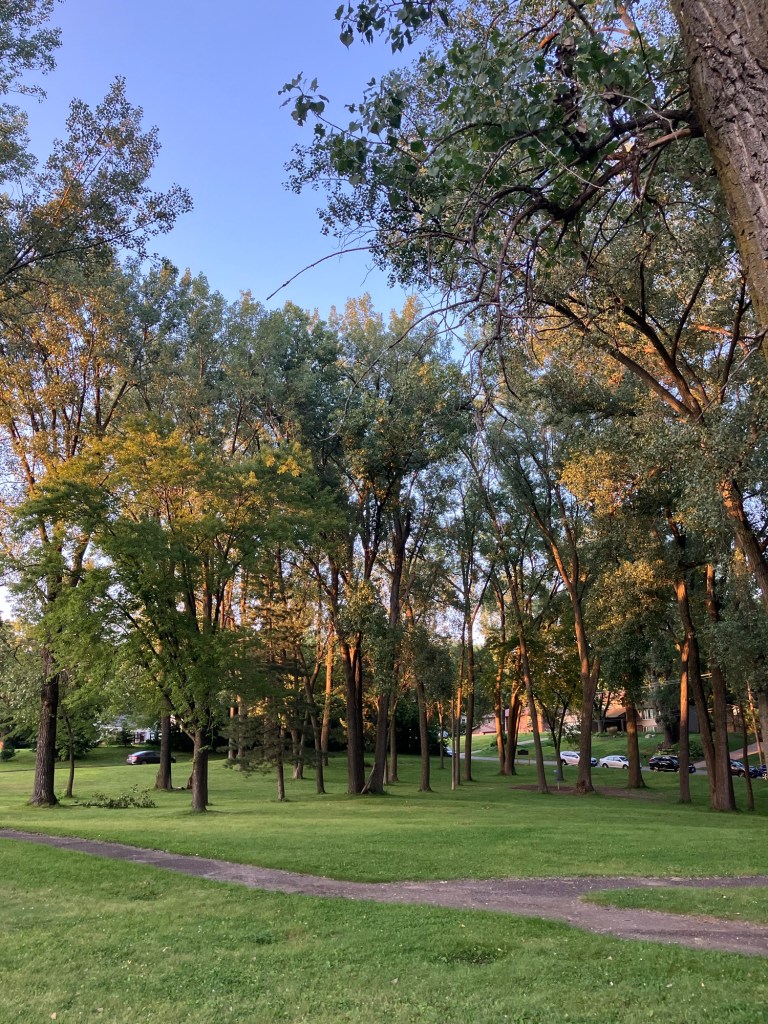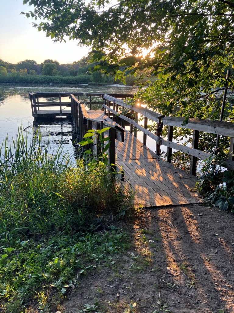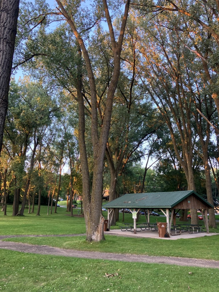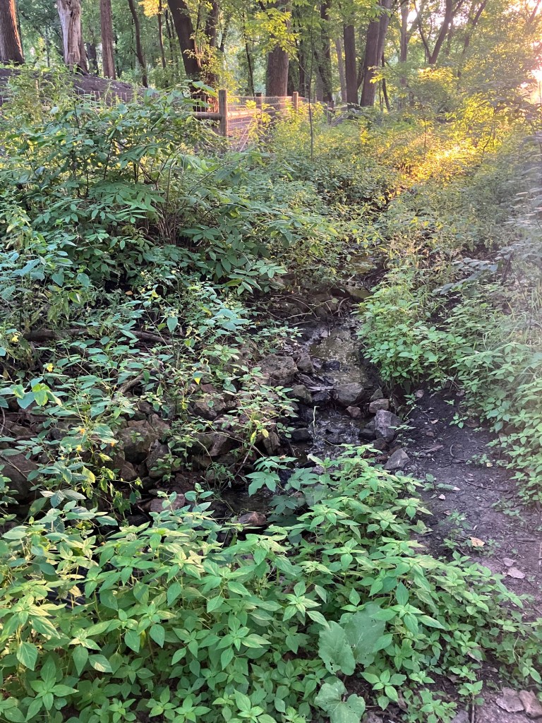 Bassett Creek Park in Crystal is a neighborhood park centered around a small woodsy stream that feeds into a scenic pond. The west side of the park is mostly comprised of a disc-golf course and a new (Fall 2023) dog park. The northeast end of the park is filled with sports fields and a playground. The east end features sprawling trees over a picnic area. A paved path from the small northeast parking lot follows the stream past the dog park, winding between the disc golf courses and water, around the pond, past the gardens, picnic space, & sports fields, wrapping around a small hill and rejoining itself across a small bridge that crosses over the stream and returns you north through the trees to the northeast lot.