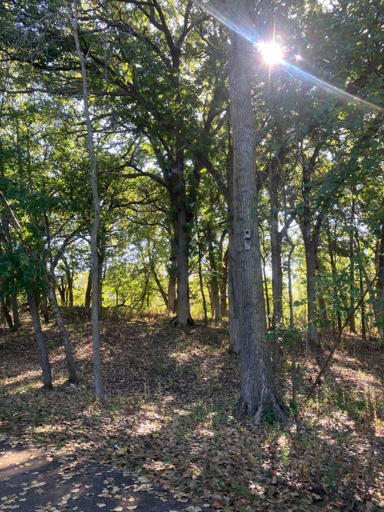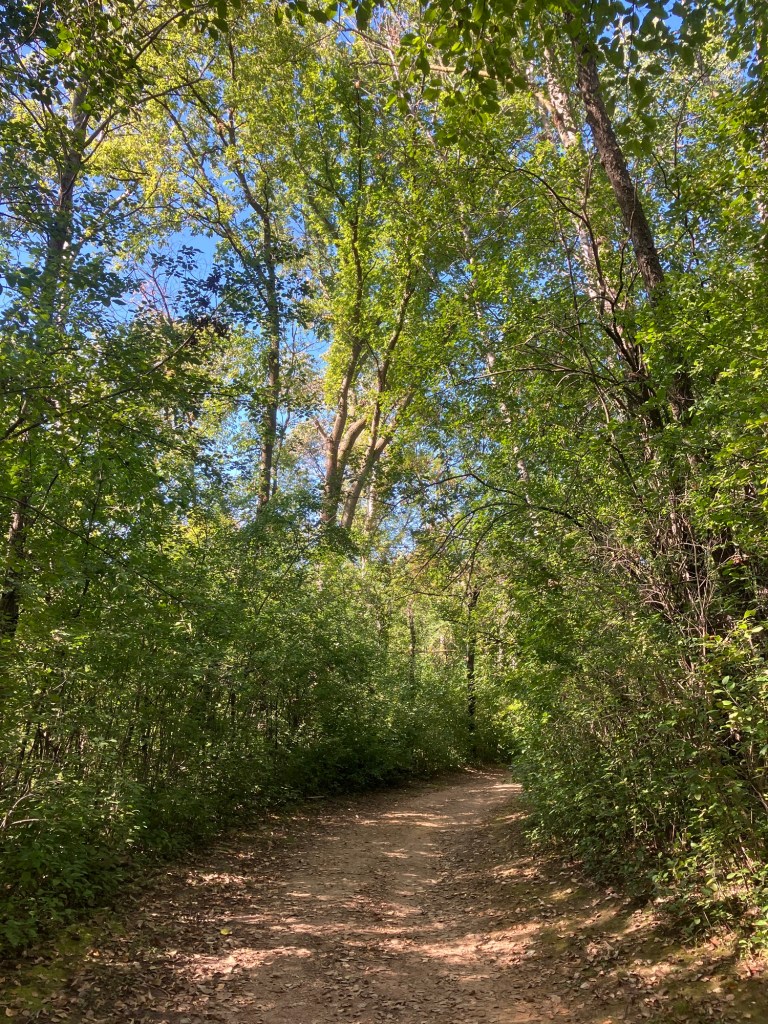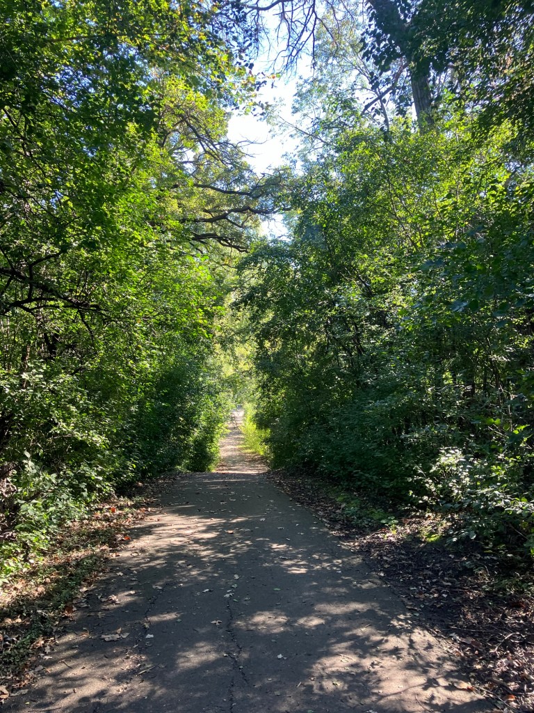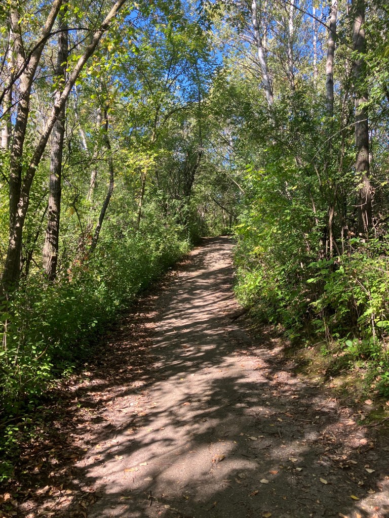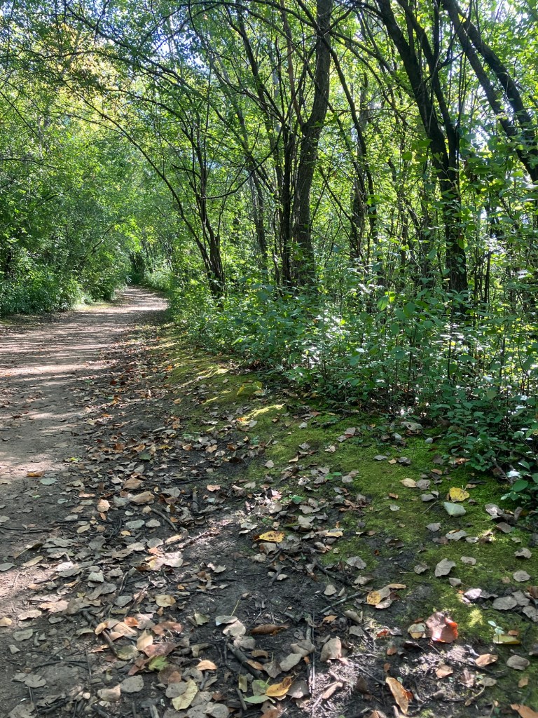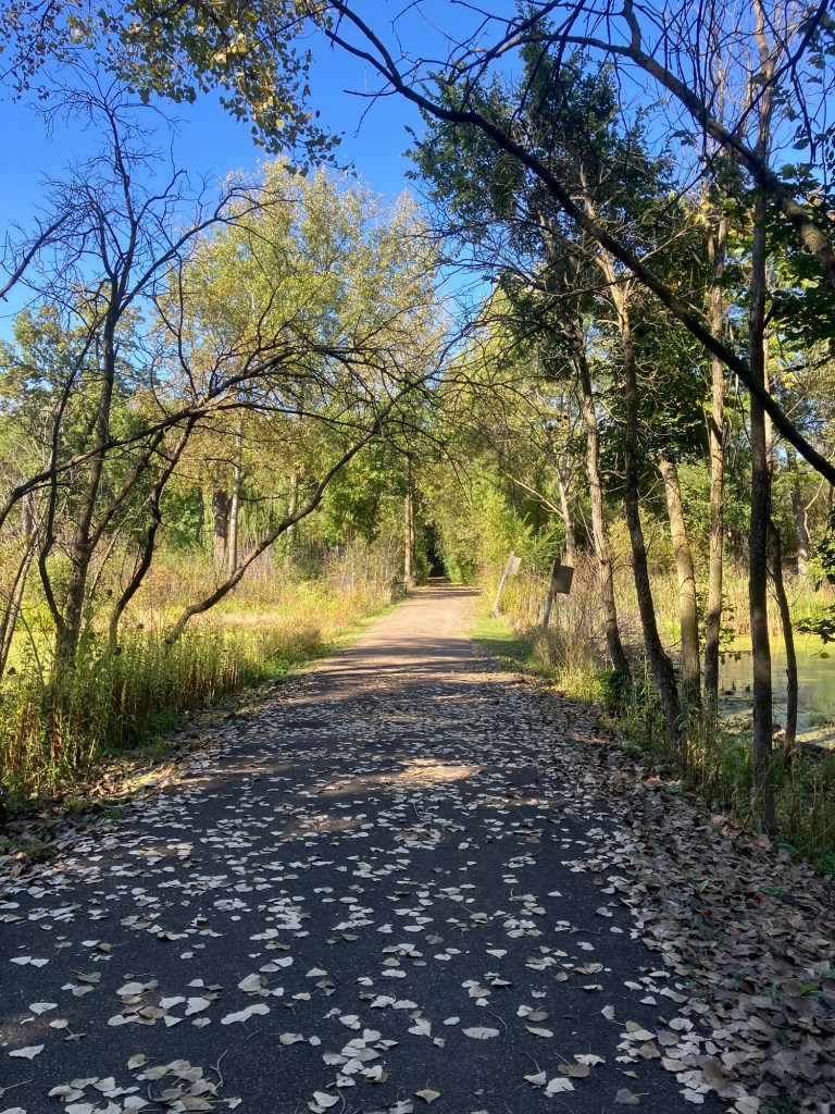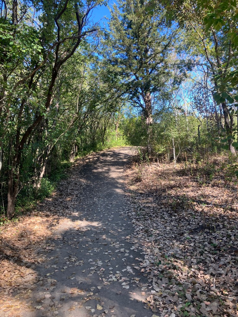 | Breseden Park in Edina, MN features a network of marshy trail loops tucked into a neighborhood against the border of MN-62. Parking in a small lot strip, the nature trail starts at a gate next to the bathrooms. The northernmost loop inside the park is particularly hilly. The second loop I encountered was partially paved with old asphalt. A broad dirt path loop extends around the wide marsh near the highway, but I stuck to the broaded paved paths for brevity. You Are Here signs are pretty adequately posted along the trails (and it’s certainly worth checking them as you make your way through the network of paths). The outermost loop around the north side of the park appeared to be a bike trail, but we ran out of time to investigate. Other trails from the parking lot seem to lead into the surrounding neighborhood The park has many very tall native cottonwood trees but is also quite thick with aggressively-invasive buckthorn trees. The parking lot was fairly full on a Sunday morning. The primary entrance and exit for the park are at the south end of the lot near the bathroom, though there’s a fence gap on the north end of the lot that was open enough to escape when I got turned around. |