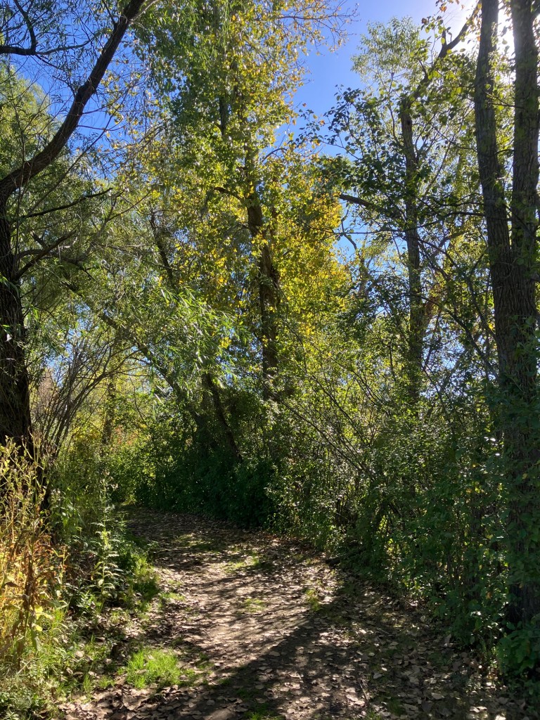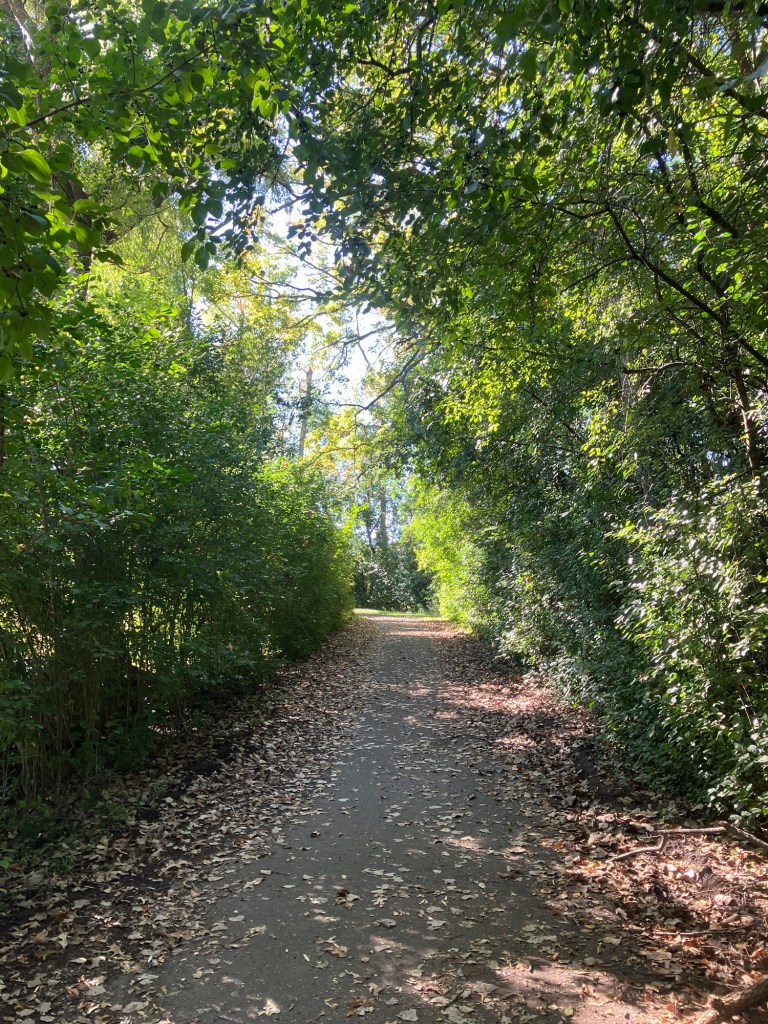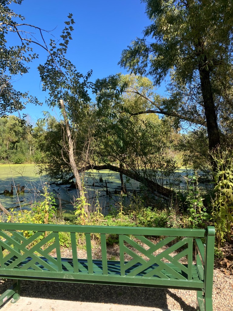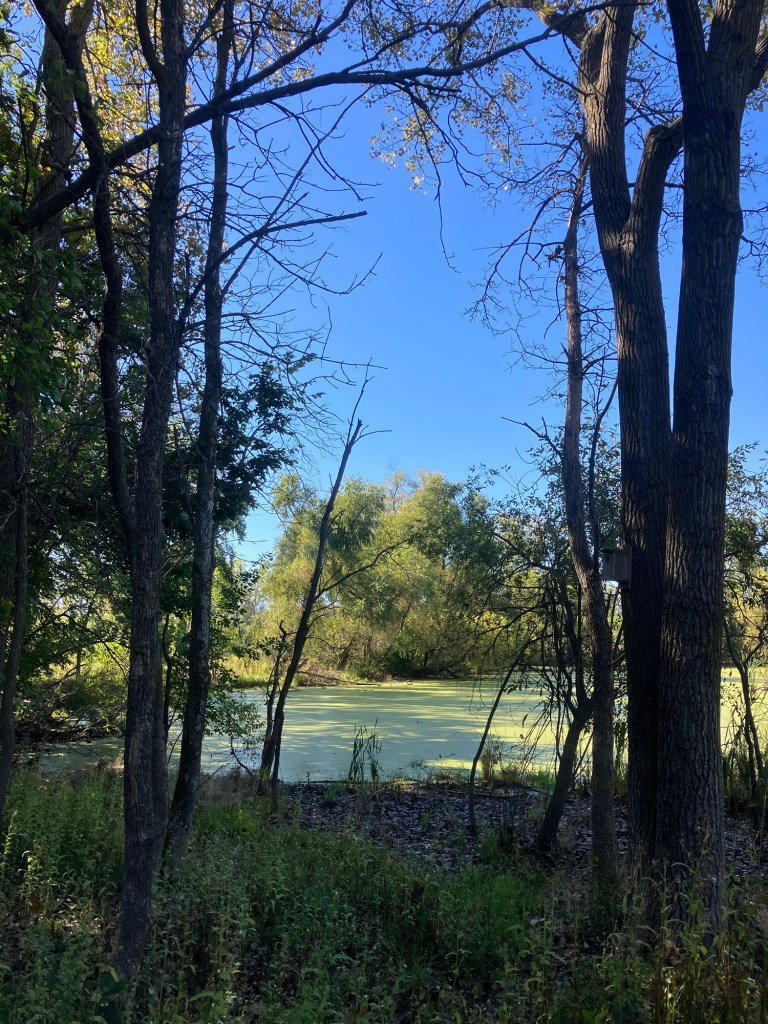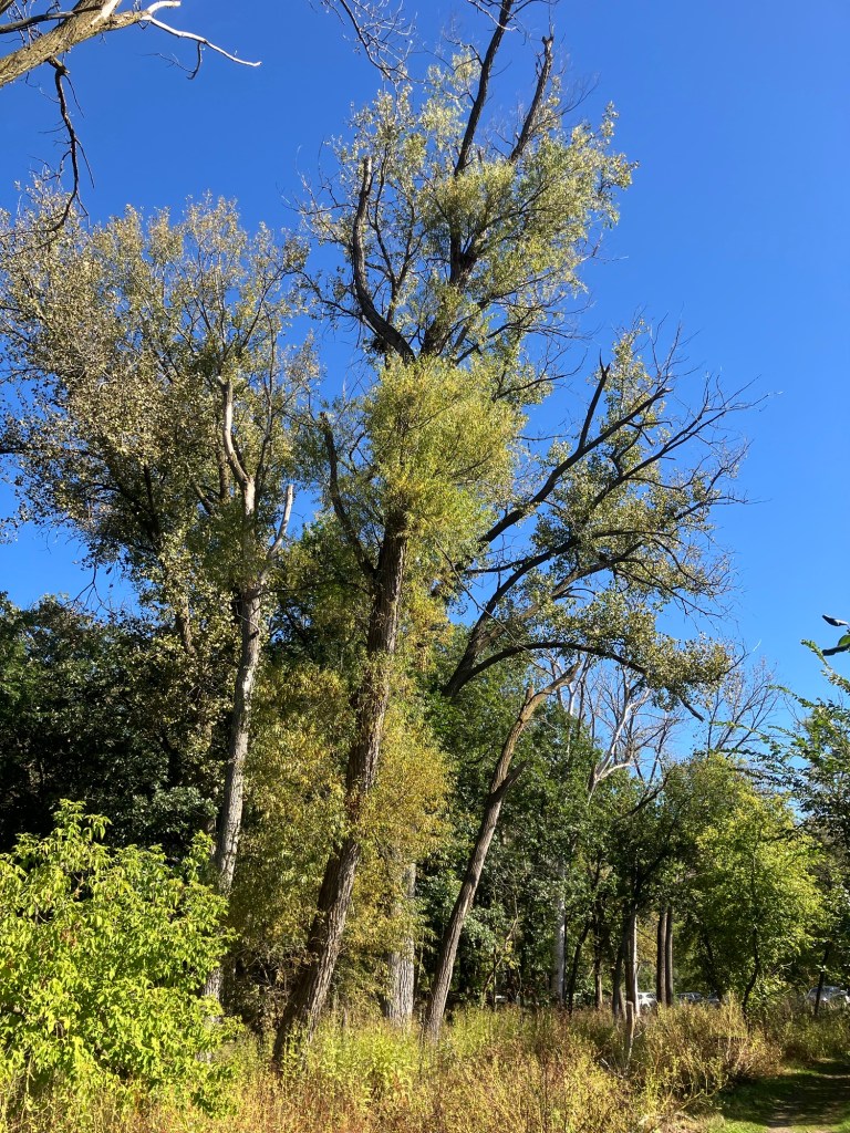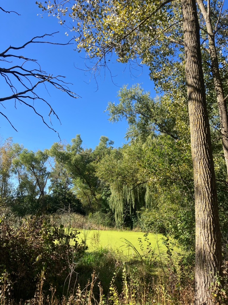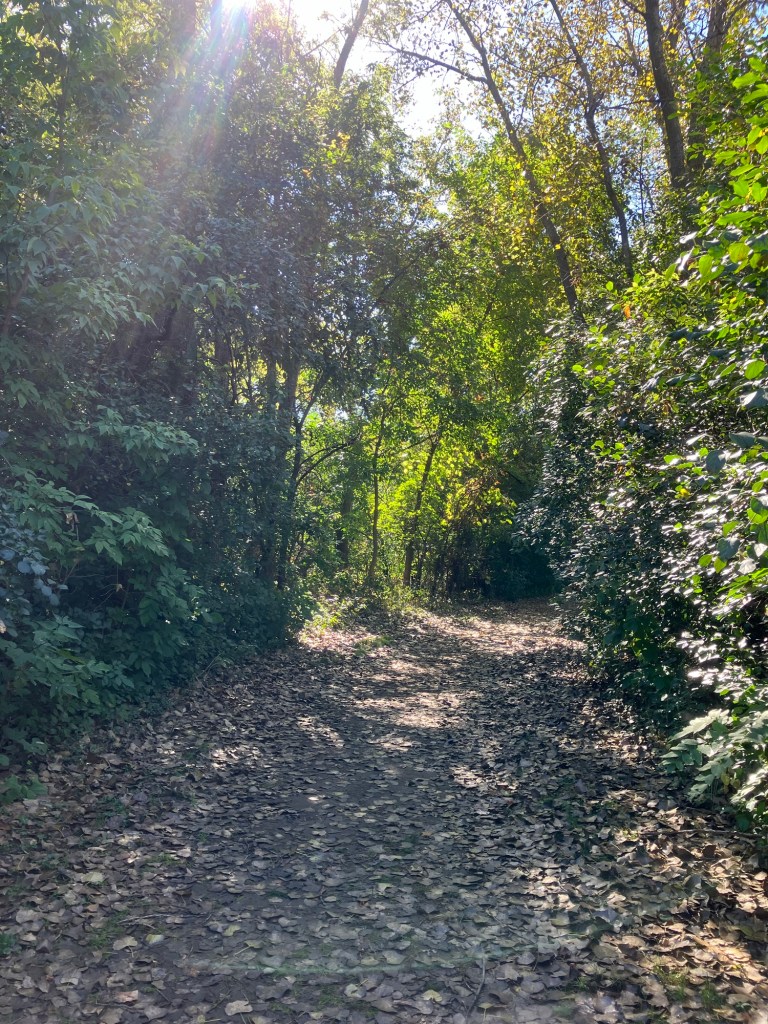 | Breseden Park in Edina, MN features a network of marshy trail loops tucked into a neighborhood against the border of MN-62. Parking in a small lot strip, the nature trail starts at a gate next to the bathrooms. The northernmost loop inside the park is particularly hilly. The second loop I encountered was partially paved with old asphalt. A broad dirt path loop extends around the wide marsh near the highway, but I stuck to the broaded paved paths for brevity. You Are Here signs are pretty adequately posted along the trails (and it’s certainly worth checking them as you make your way through the network of paths). The outermost loop around the north side of the park appeared to be a bike trail, but we ran out of time to investigate. Other trails from the parking lot seem to lead into the surrounding neighborhood The park has many very tall native cottonwood trees but is also quite thick with aggressively-invasive buckthorn trees. The parking lot was fairly full on a Sunday morning. The primary entrance and exit for the park are at the south end of the lot near the bathroom, though there’s a fence gap on the north end of the lot that was open enough to escape when I got turned around. |