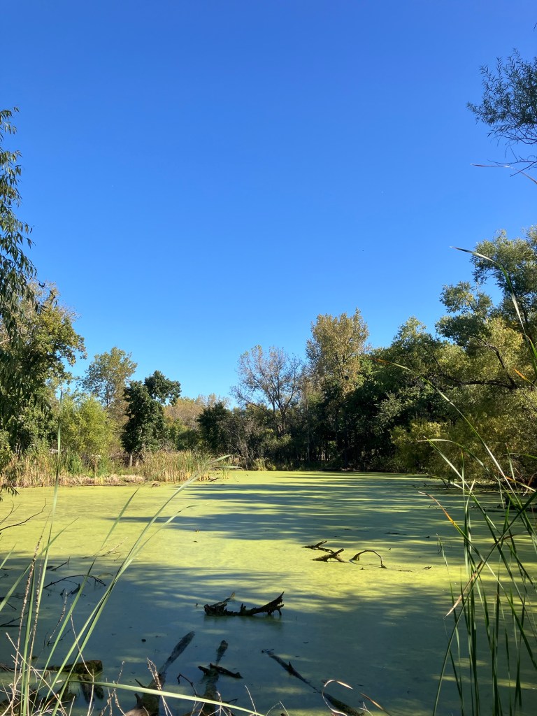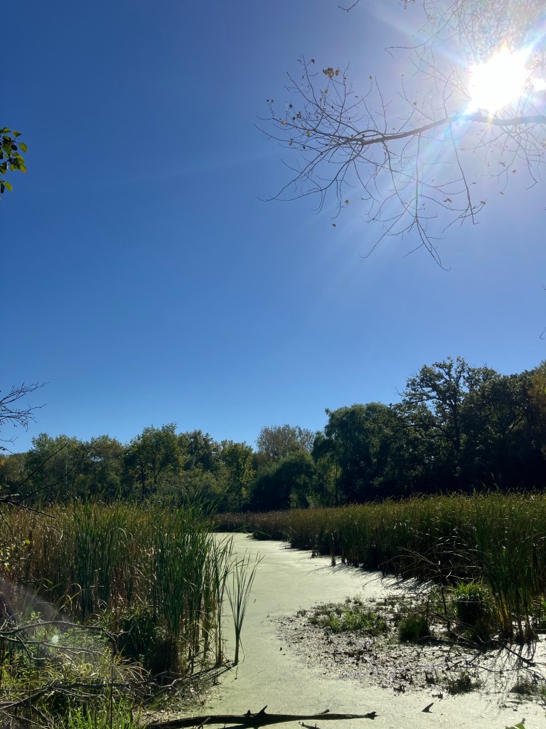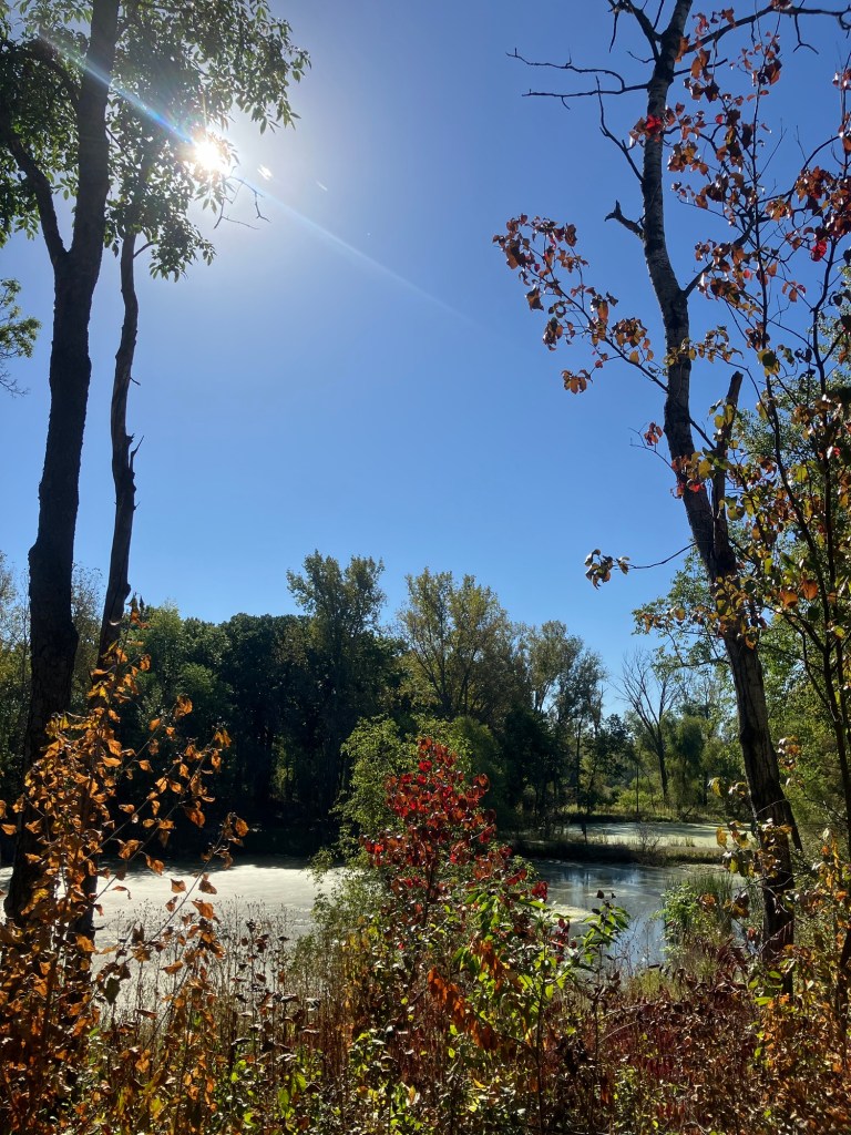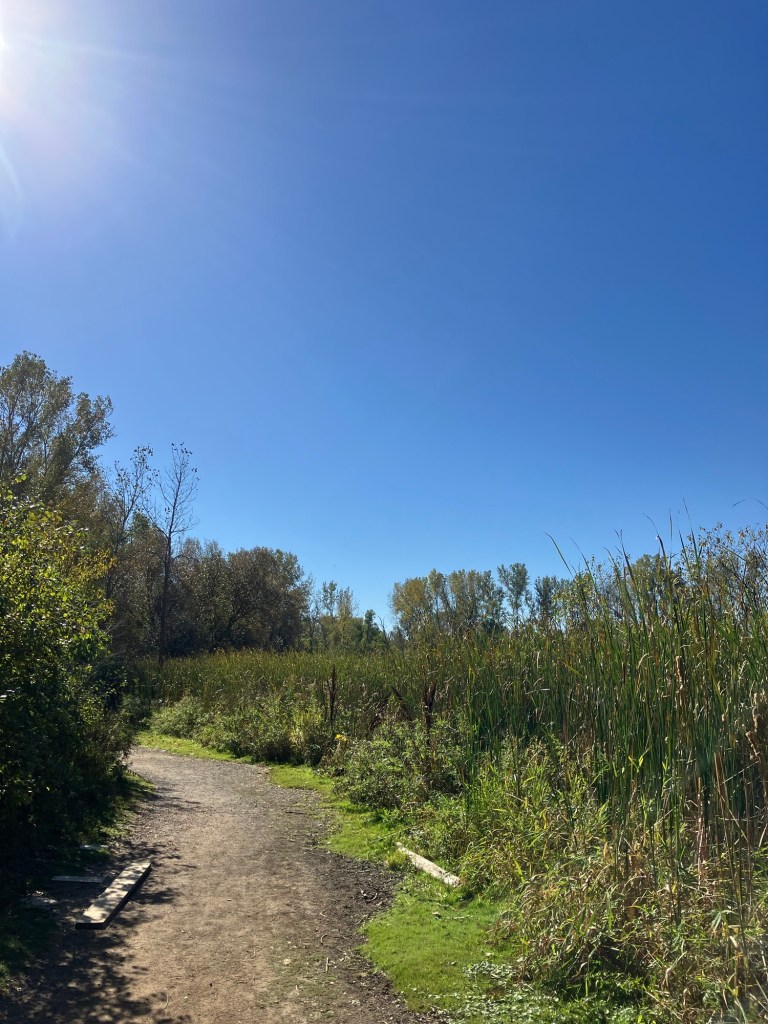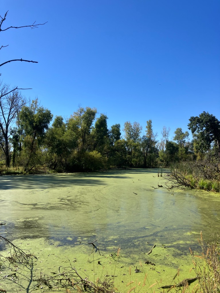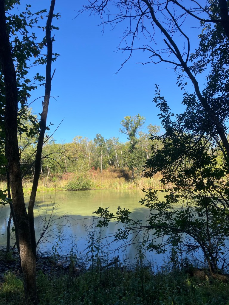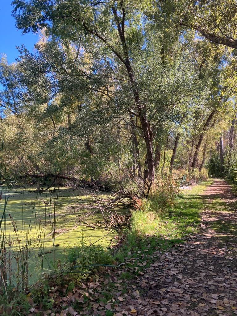 | Breseden Park in Edina, MN features a network of marshy trail loops tucked into a neighborhood against the border of MN-62. Parking in a small lot strip, the nature trail starts at a gate next to the bathrooms. The northernmost loop inside the park is particularly hilly. The second loop I encountered was partially paved with old asphalt. A broad dirt path loop extends around the wide marsh near the highway, but I stuck to the broaded paved paths for brevity. You Are Here signs are pretty adequately posted along the trails (and it’s certainly worth checking them as you make your way through the network of paths). The outermost loop around the north side of the park appeared to be a bike trail, but we ran out of time to investigate. Other trails from the parking lot seem to lead into the surrounding neighborhood The park has many very tall native cottonwood trees but is also quite thick with aggressively-invasive buckthorn trees. The parking lot was fairly full on a Sunday morning. The primary entrance and exit for the park are at the south end of the lot near the bathroom, though there’s a fence gap on the north end of the lot that was open enough to escape when I got turned around. |