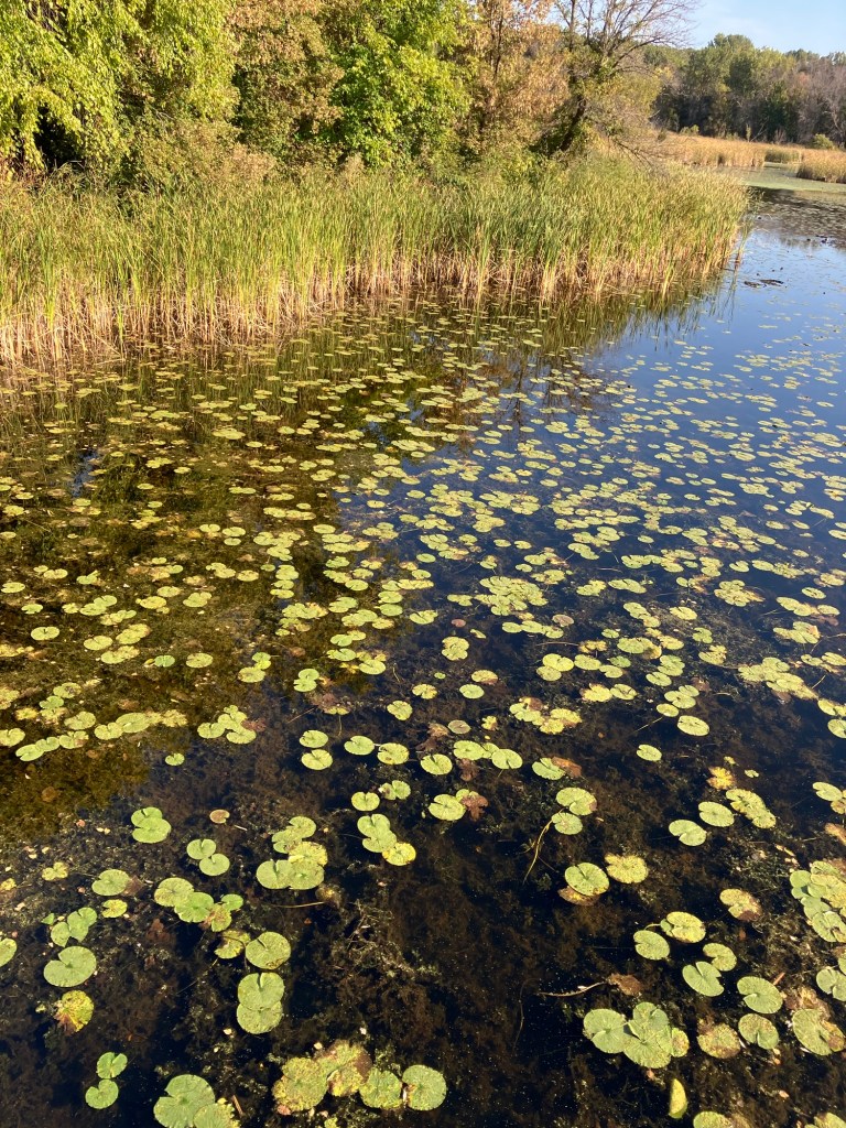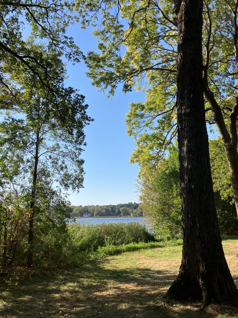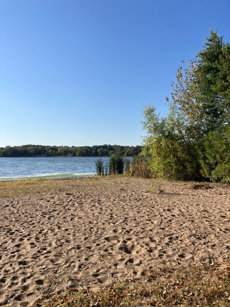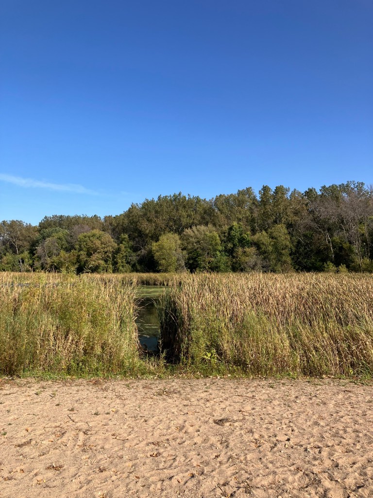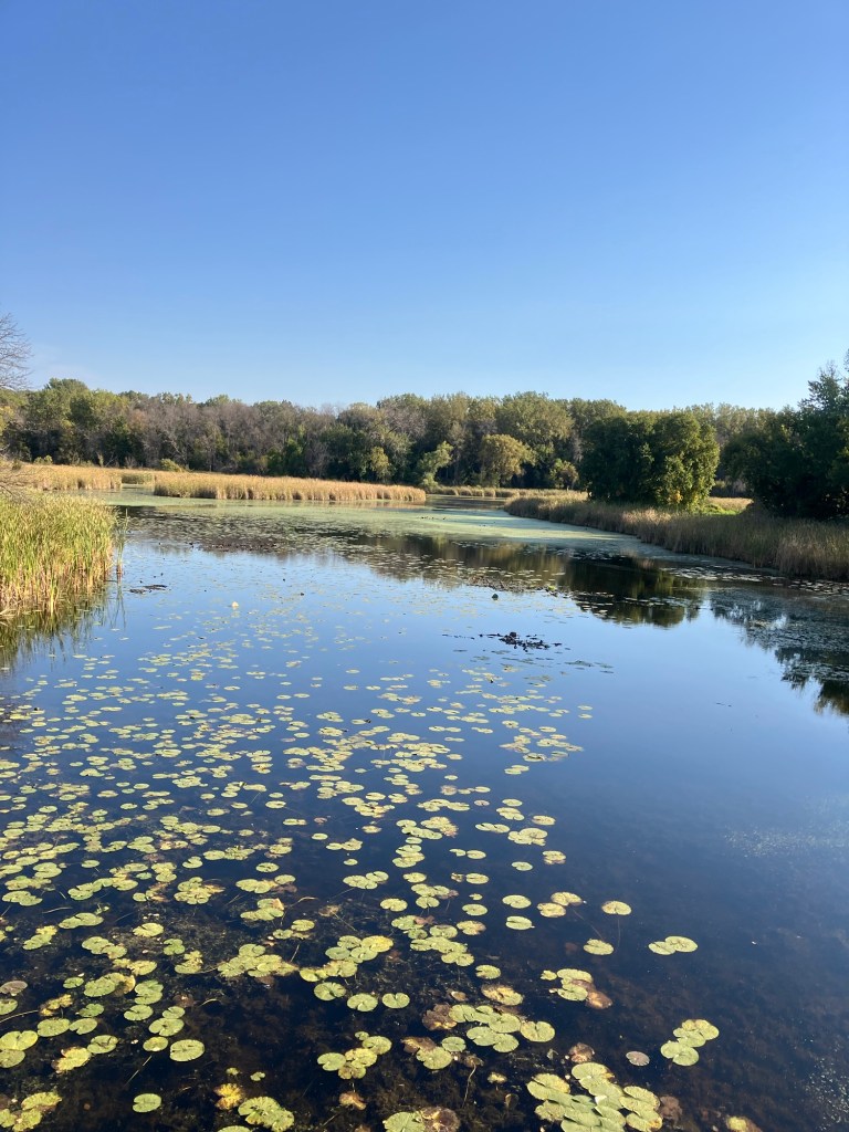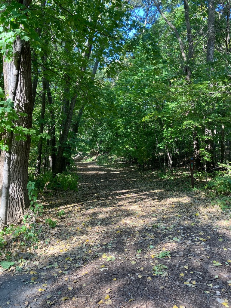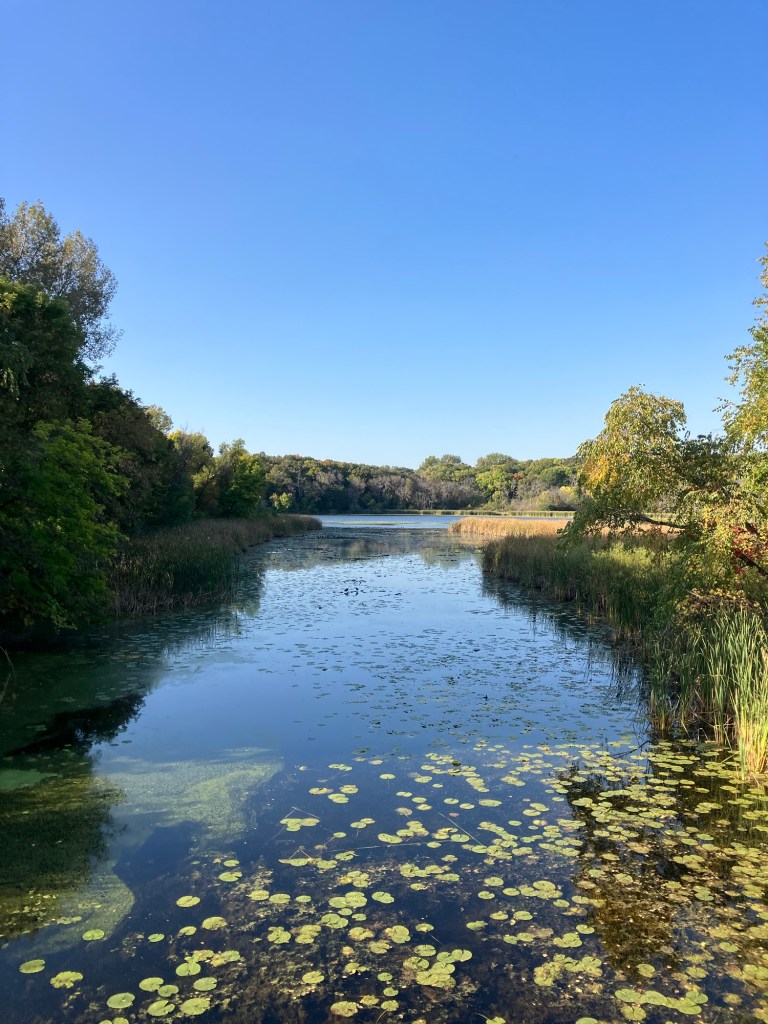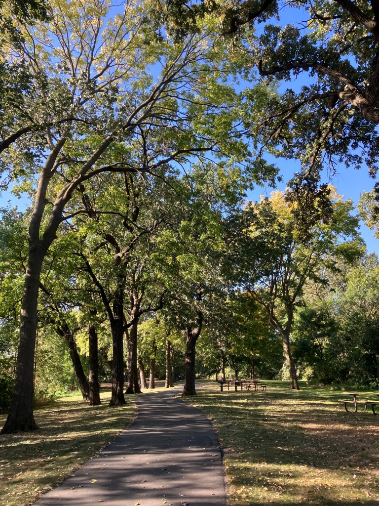 Clifton E. French Regional Park in Plymouth, MN is an expansive park along the north end of Medicine Lake. The park features boating and extensive bike trails as well as a large and brightly-colored new playground. As much as I miss the tall old wood-and-ropes set, I will say that the mounded layout of the new playground makes for easy access and limited falls for younger children—and there is a toddler-sized playhouse and slide on the south end of the playground. The playground is right next to the visitor center, and a family bathroom can be accessed just inside the south door (which makes bringing in a stroller a breeze!). Follow a path south past the playground to find long scenic trails, crossing bridges over lily-covered marshes abounding with turtles and ducks through much of the year. West of the Medicine Lake beach you can find a path through shady green picnic grounds leading to a secluded point with a gorgeous view of the lake. Paths back around the marsh, following close to the road or winding through the trees. Several of these unpaved woody paths are broad and flat enough to pass a sturdy jogging stroller, but the paved path does circle all the way around to the parking lot near the playground again.