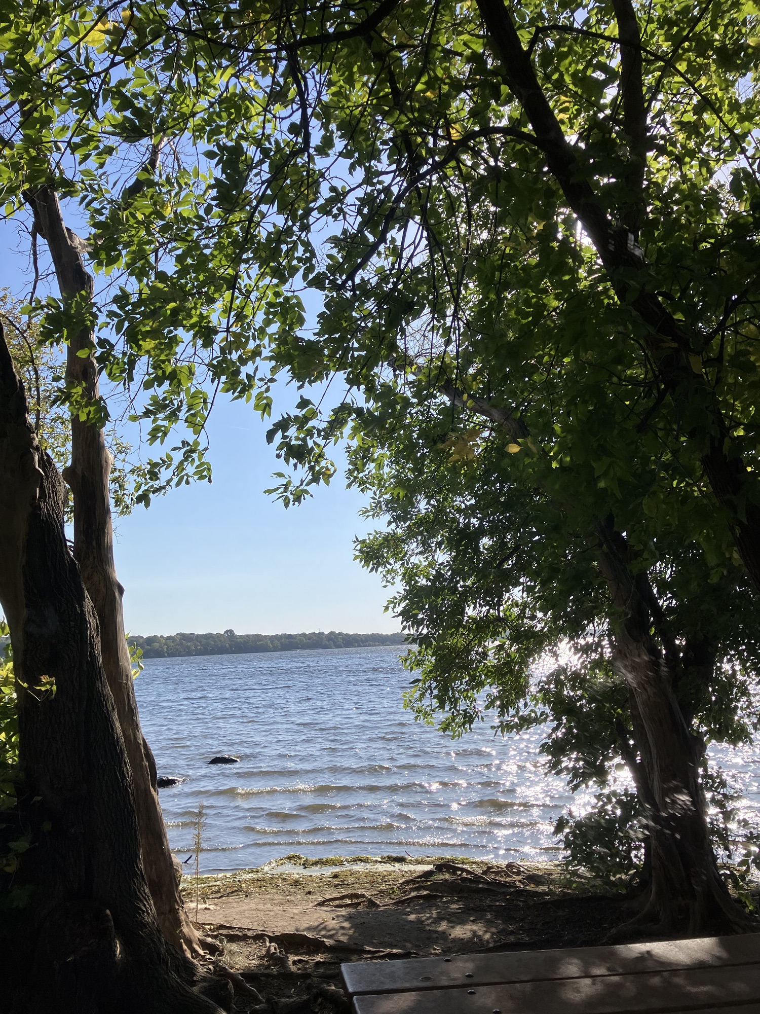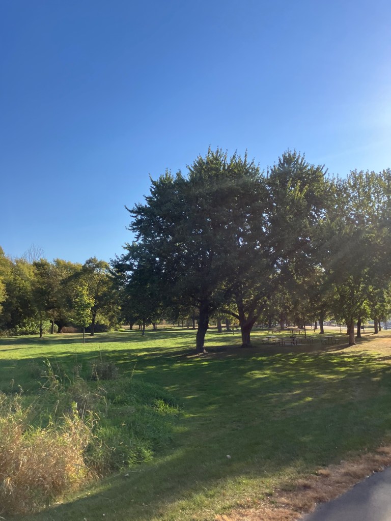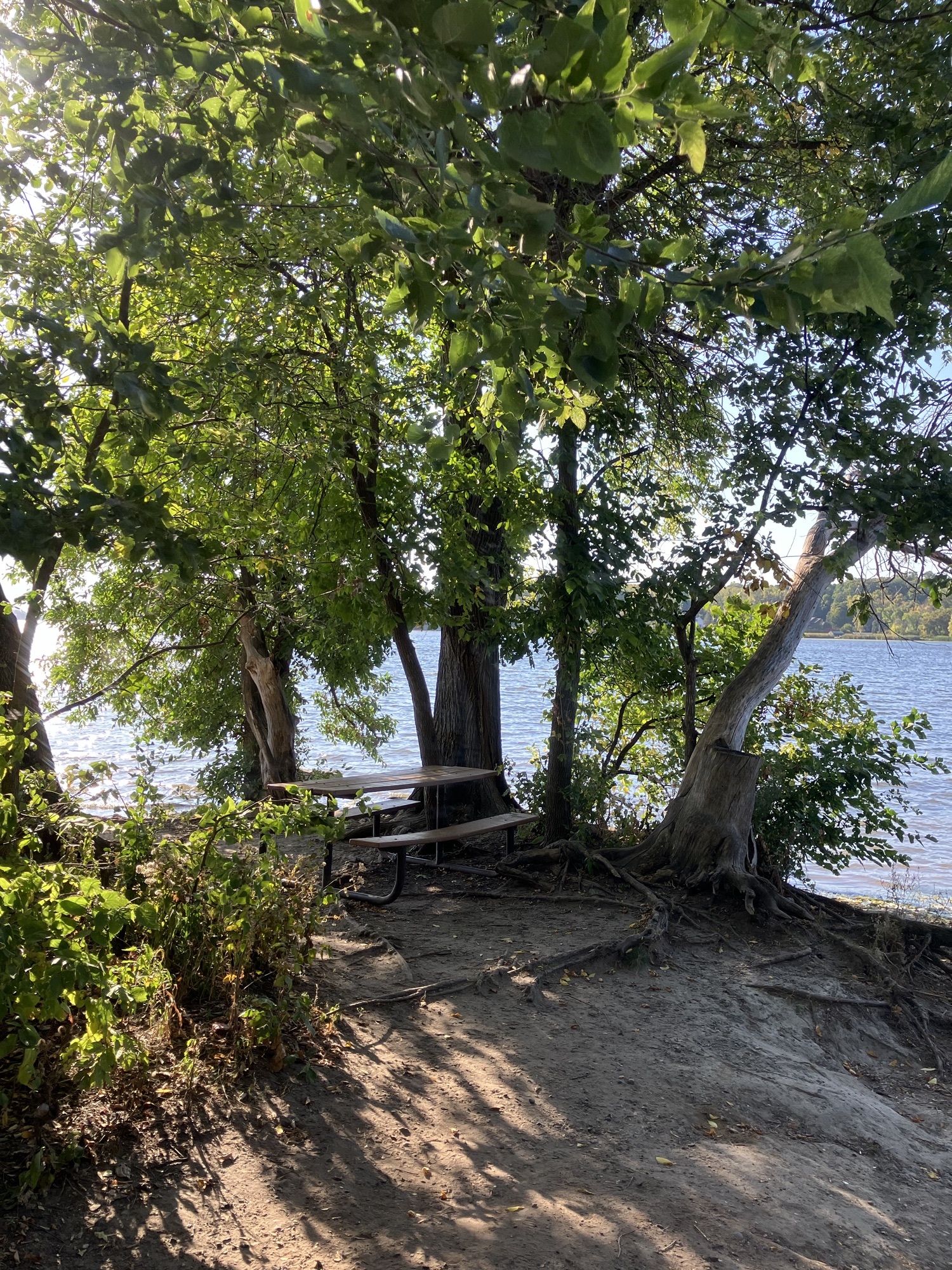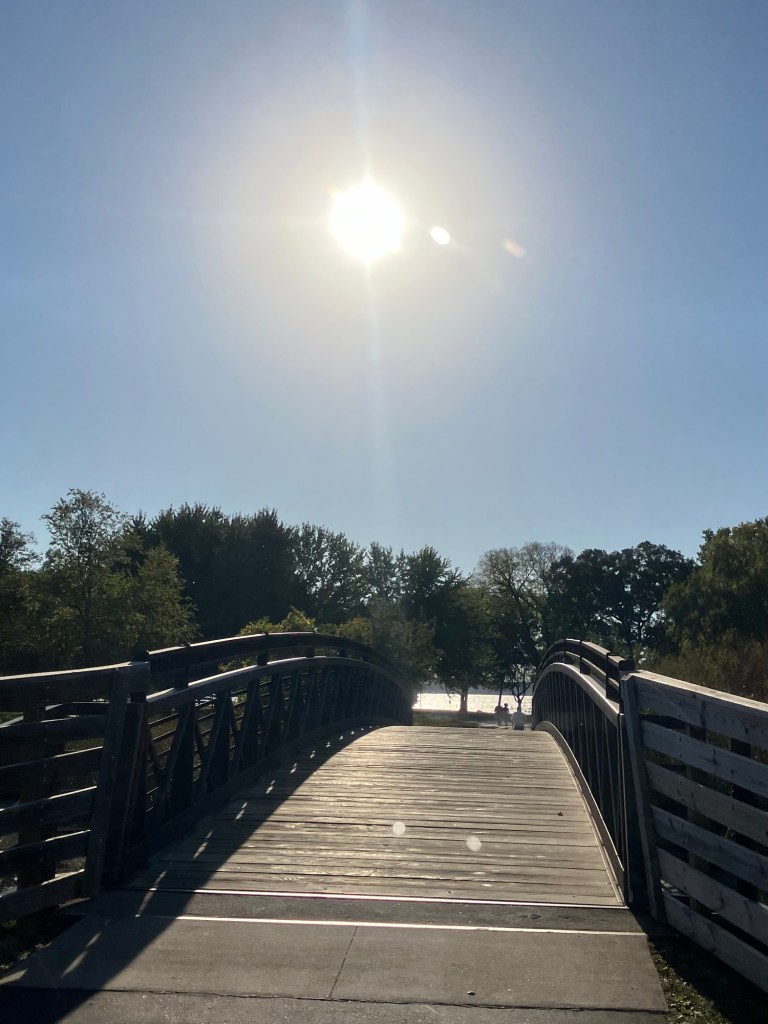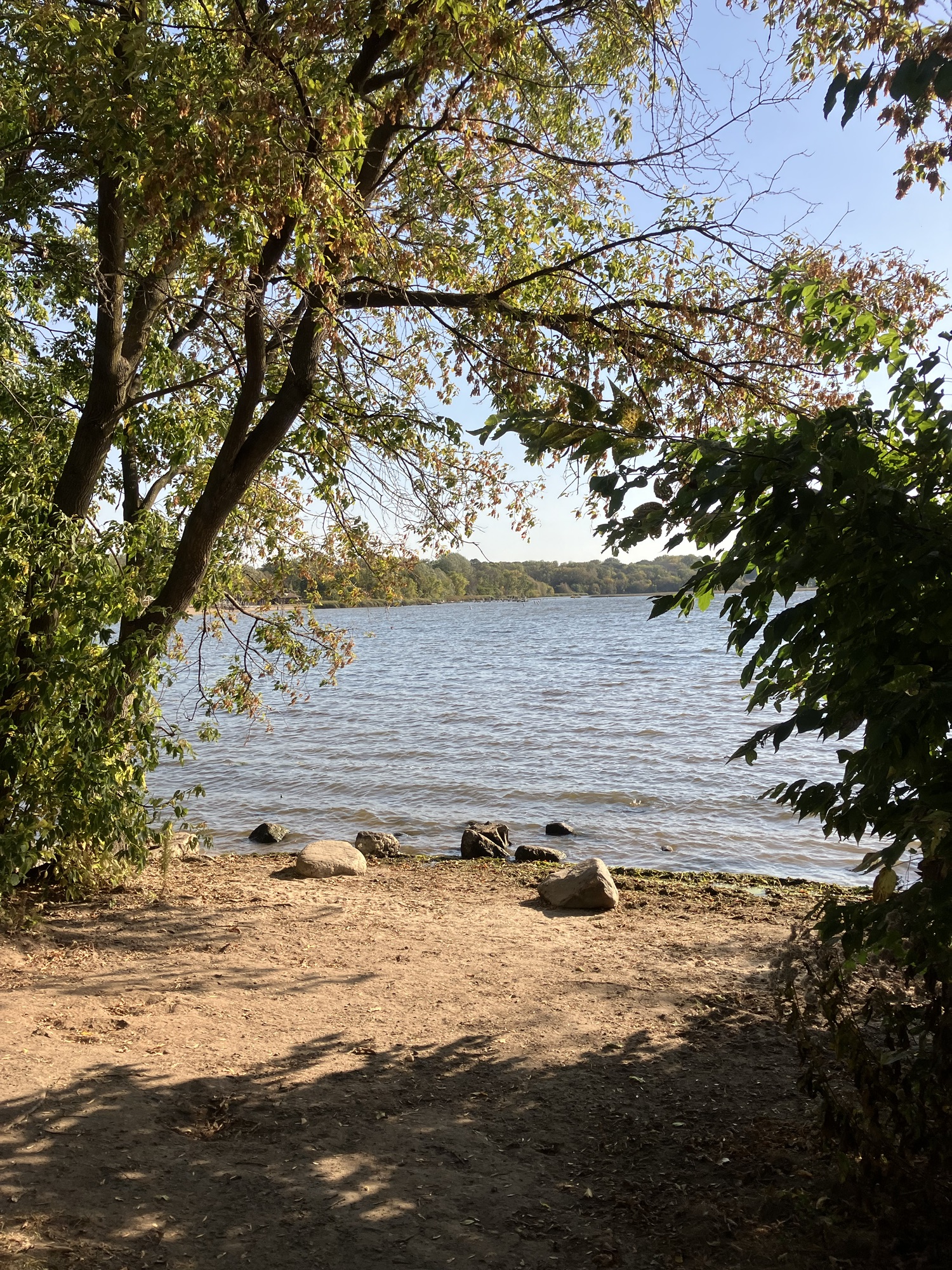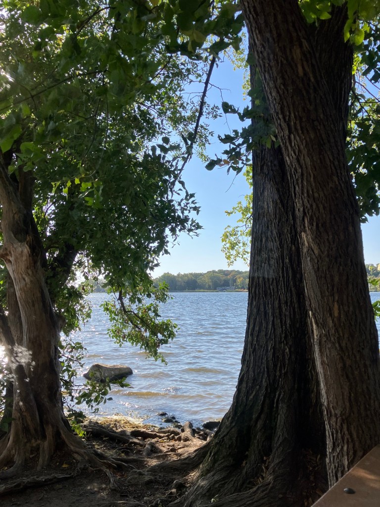 Clifton E. French Regional Park in Plymouth, MN is an expansive park along the north end of Medicine Lake. The park features boating and extensive bike trails as well as a large and brightly-colored new playground. As much as I miss the tall old wood-and-ropes set, I will say that the mounded layout of the new playground makes for easy access and limited falls for younger children—and there is a toddler-sized playhouse and slide on the south end of the playground. The playground is right next to the visitor center, and a family bathroom can be accessed just inside the south door (which makes bringing in a stroller a breeze!). Follow a path south past the playground to find long scenic trails, crossing bridges over lily-covered marshes abounding with turtles and ducks through much of the year. West of the Medicine Lake beach you can find a path through shady green picnic grounds leading to a secluded point with a gorgeous view of the lake. Paths back around the marsh, following close to the road or winding through the trees. Several of these unpaved woody paths are broad and flat enough to pass a sturdy jogging stroller, but the paved path does circle all the way around to the parking lot near the playground again.