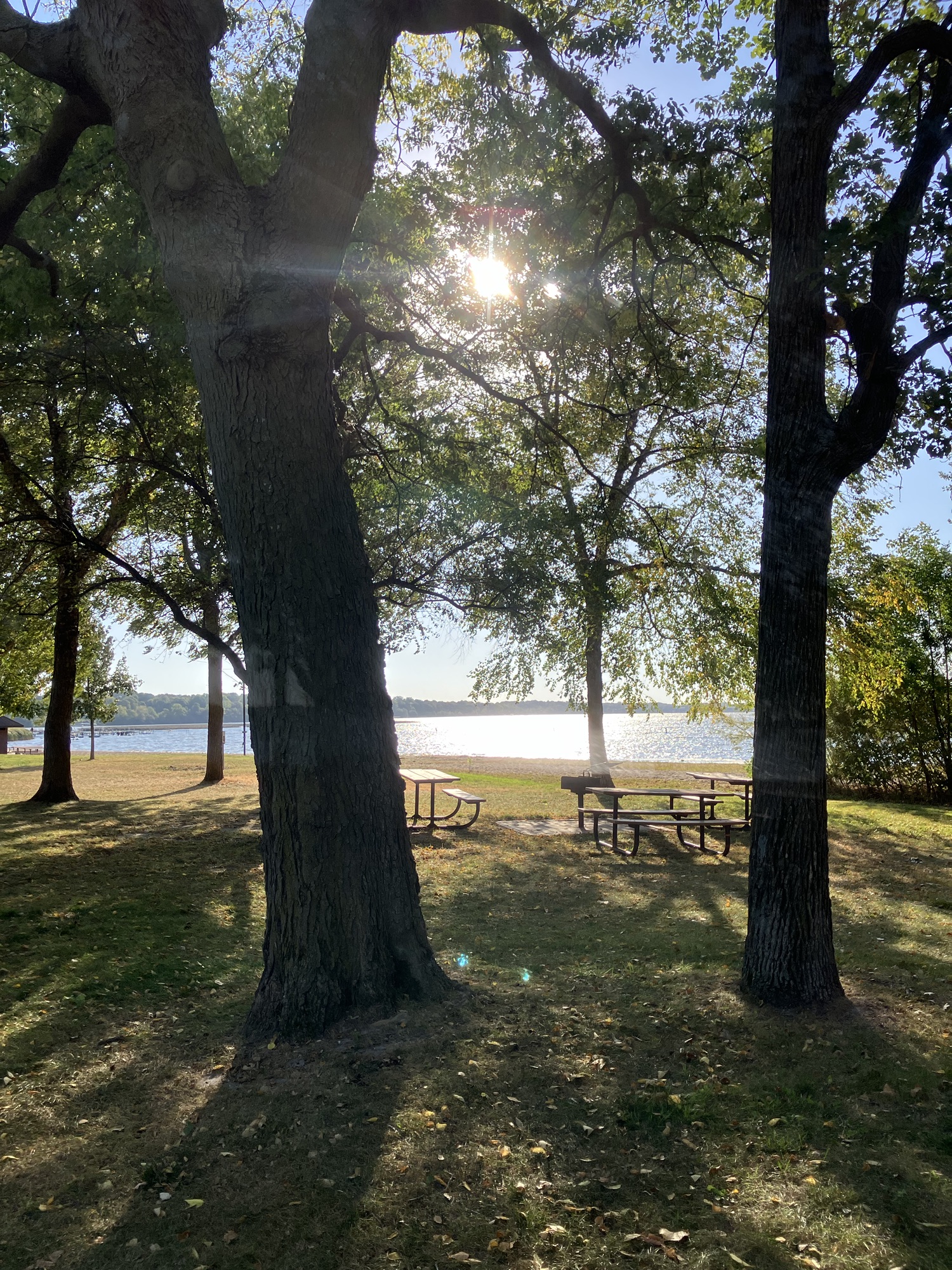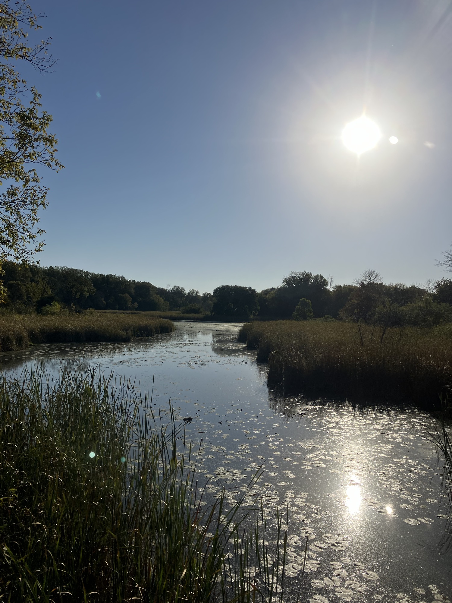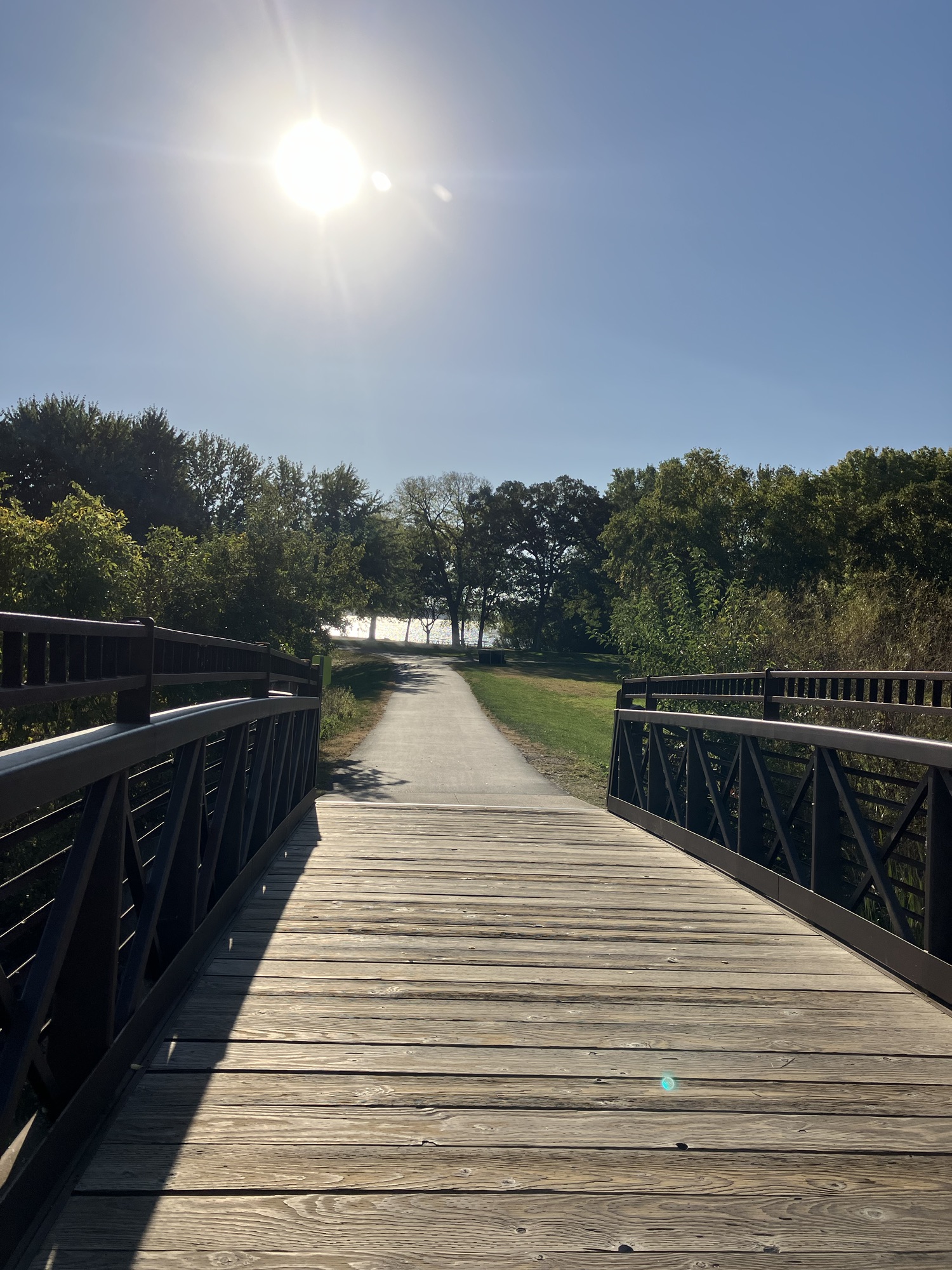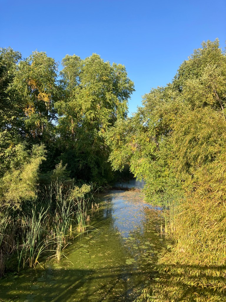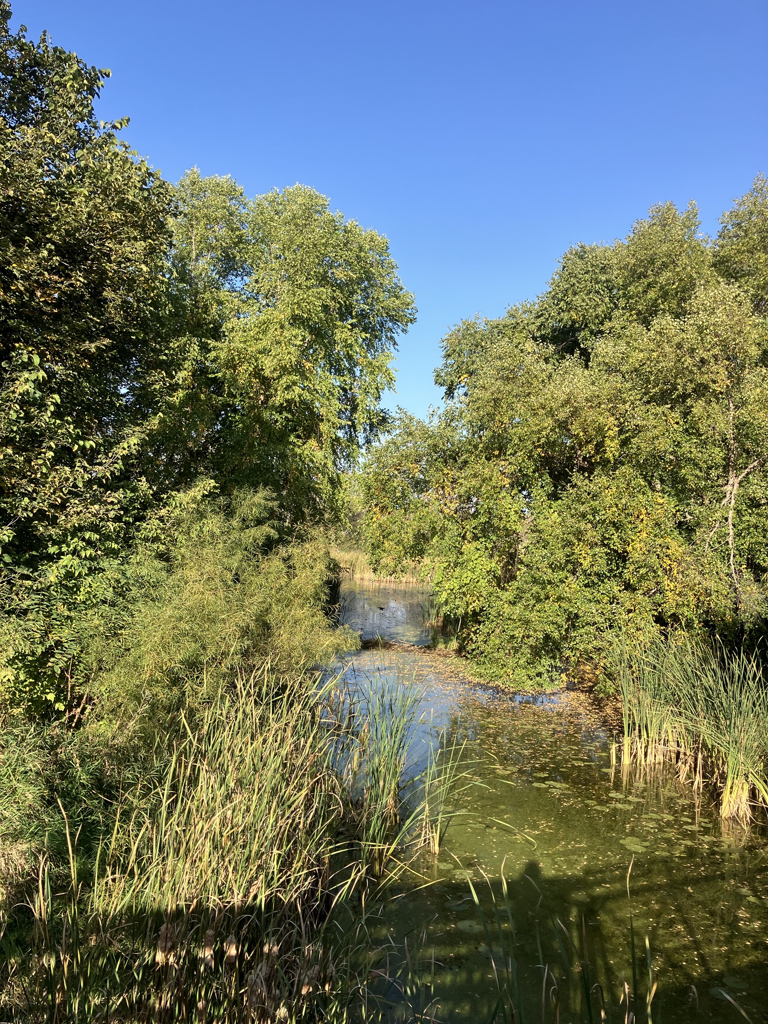 Clifton E. French Regional Park in Plymouth, MN is an expansive park along the north end of Medicine Lake. The park features boating and extensive bike trails as well as a large and brightly-colored new playground. As much as I miss the tall old wood-and-ropes set, I will say that the mounded layout of the new playground makes for easy access and limited falls for younger children—and there is a toddler-sized playhouse and slide on the south end of the playground. The playground is right next to the visitor center, and a family bathroom can be accessed just inside the south door (which makes bringing in a stroller a breeze!). Follow a path south past the playground to find long scenic trails, crossing bridges over lily-covered marshes abounding with turtles and ducks through much of the year. West of the Medicine Lake beach you can find a path through shady green picnic grounds leading to a secluded point with a gorgeous view of the lake. Paths back around the marsh, following close to the road or winding through the trees. Several of these unpaved woody paths are broad and flat enough to pass a sturdy jogging stroller, but the paved path does circle all the way around to the parking lot near the playground again.