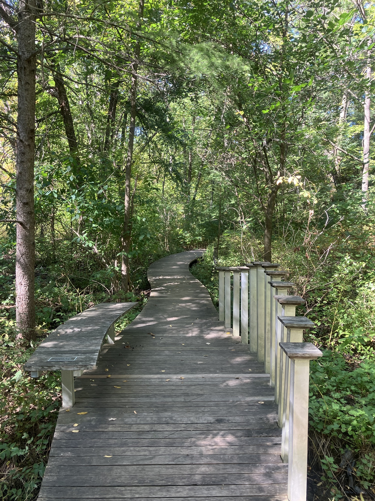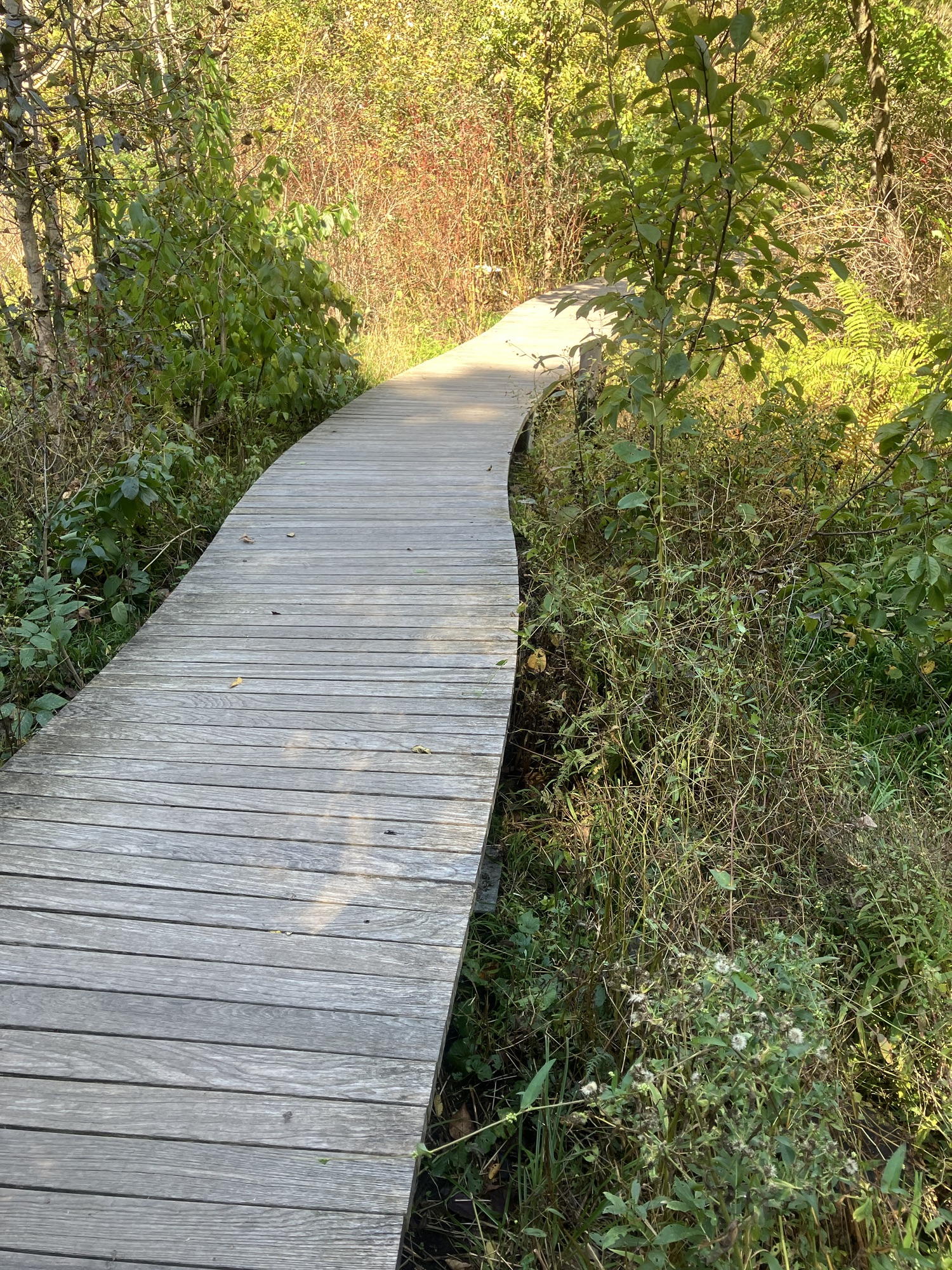 Located between Theodore Wirth Park and Brownie Lake, this little park has a limited season, open from mid-April to mid-October (except Mondays) and then open weekends through the end of October. Different wildflowers will be blooming throughout the year, but staff notes in the park will recommend things to look for, like actively blooming flowers. Turning right at from the entrance, the prairie path is hilly and narrow with some tight curves. A trail at the farthest edge of the prairie loop leads to another short loop down a ferny hill and back up again to the prairie. The trail turning left from the entrance leads to the cute visitor center where you can stop to shelter and chat about seasonal plants and wildlife before continuing on to the woodland trail circling a bog, which should be wide enough to pass a sturdy stroller. The boardwalk through the bog is wonderful and an excellent spot to sight some tamarack (larch) trees before they drop their needles for the winter!