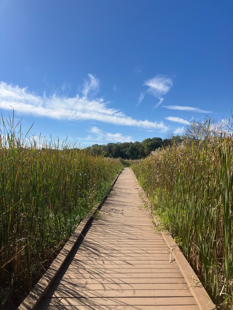 With a small parking lot tucked away behind a neighborhood on Kinsel Road, Kinsel Park is a fairly quiet natural space at the north end of Glen Lake. It features a boardwalk that cuts through the marsh and completes a loop. Several more paths lead downhill from apartment complexes into the park. In the heat of summer, the marsh recedes and the boardwalk may sit amid the cattails about a foot above the mud. This park offers a few scattered picnic tables and relatively little shade, which can start to feel very exposed on a sunny day.