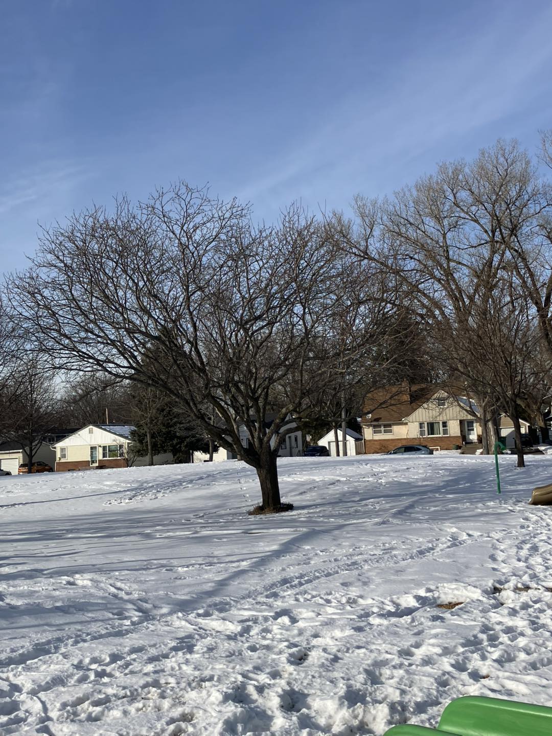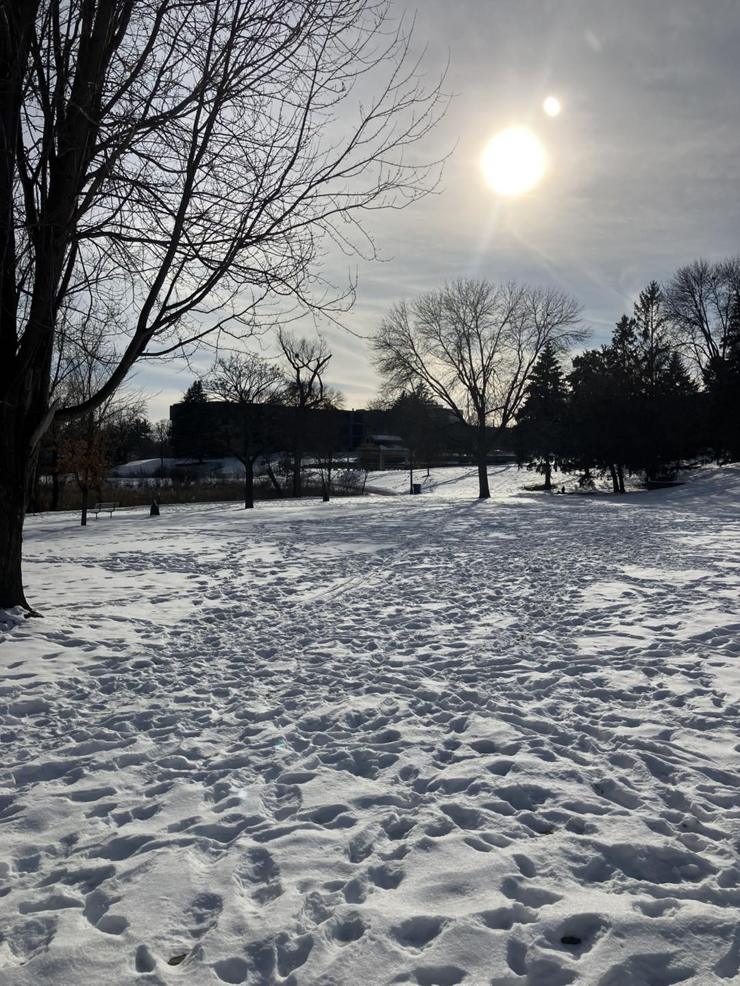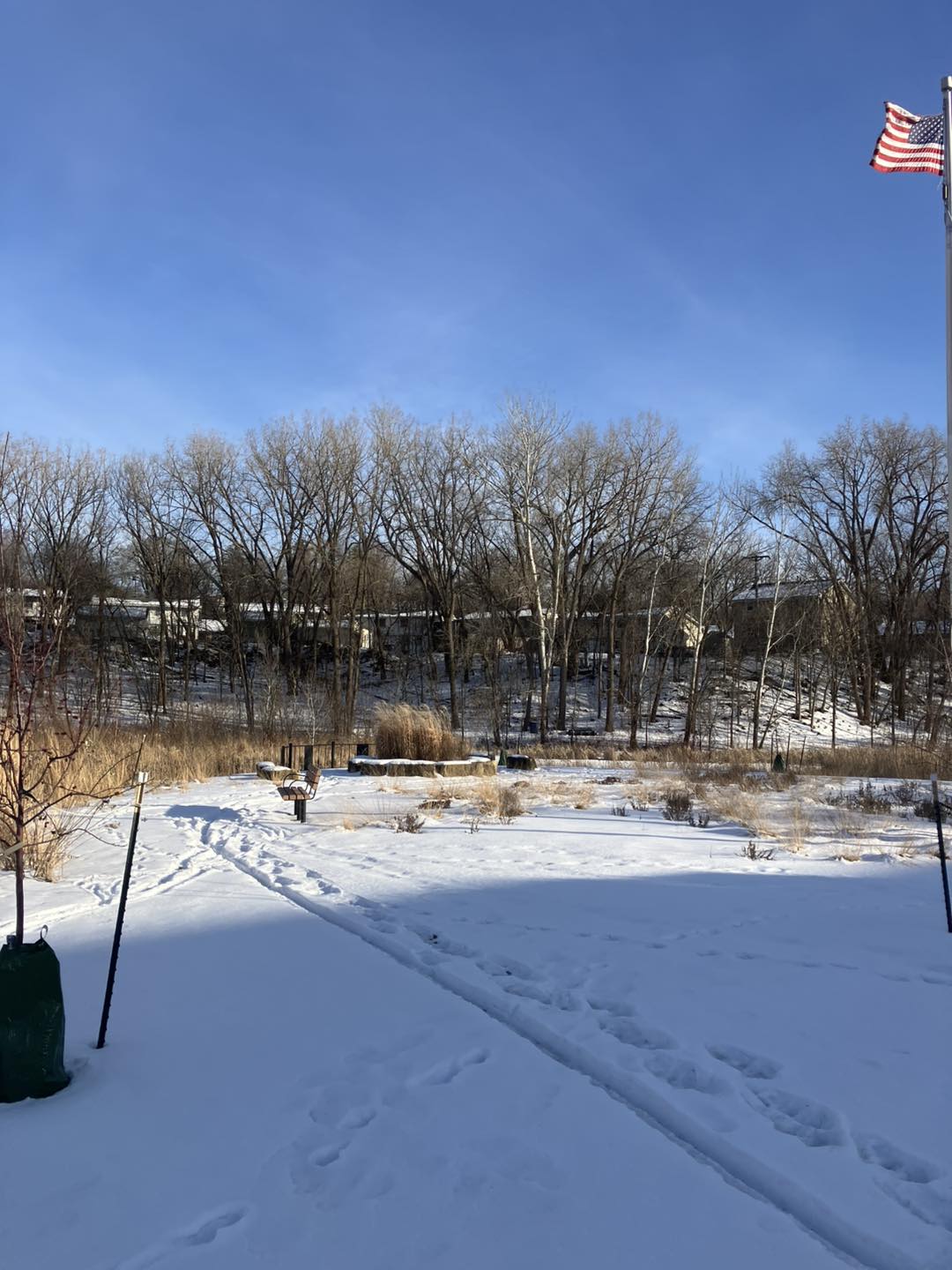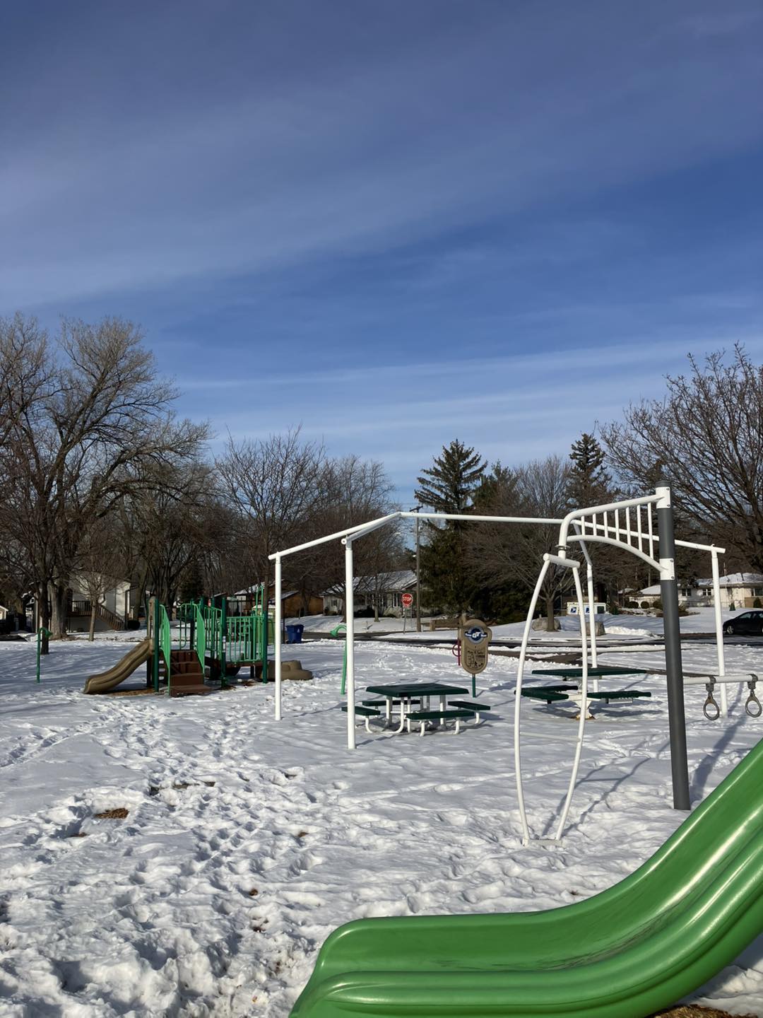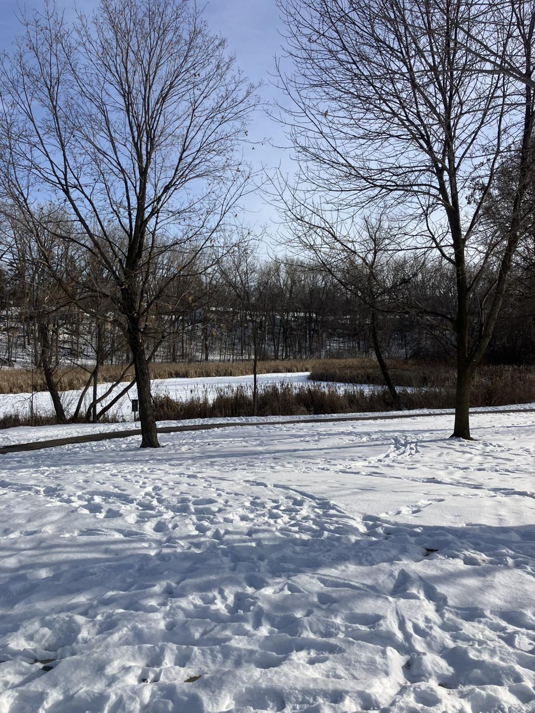 | LaBelle Park is a rather tucked-away space in Columbia Heights, situated between a row of apartment complexes and block of houses. Even so, it sports a small playground (and a port-a-potty) near its parking lot, tree-spotted greens, a landscape garden, and a stroller-friendly trail that winds south around lengthy LaBelle Pond (beautiful even in the deep winter) and back up through a woodsy passage below the houses. It’s also located very near the Columbia Heights library, which hosts its own impressive collection of board books. |