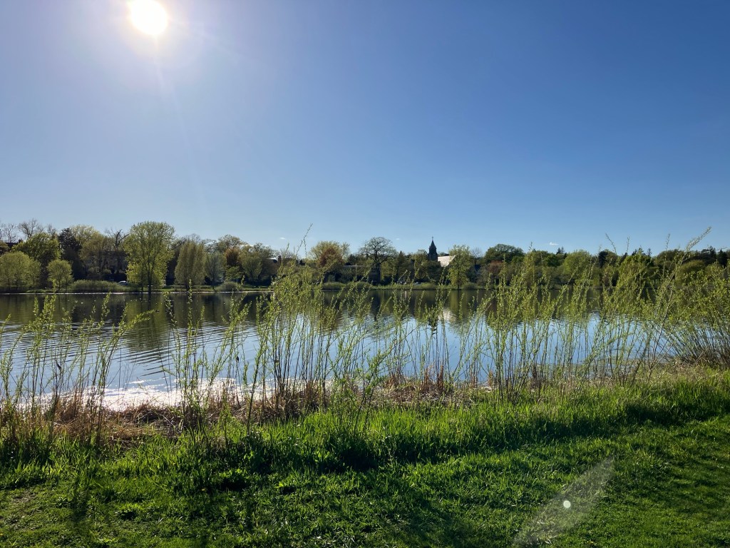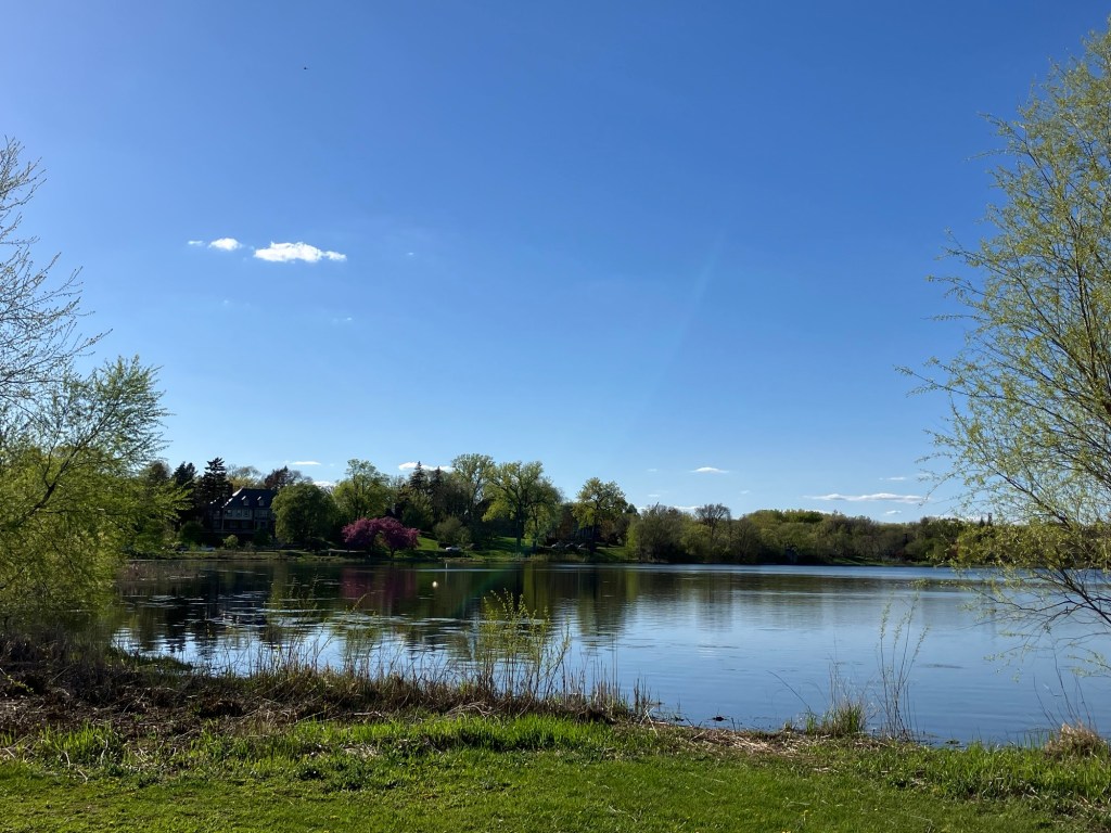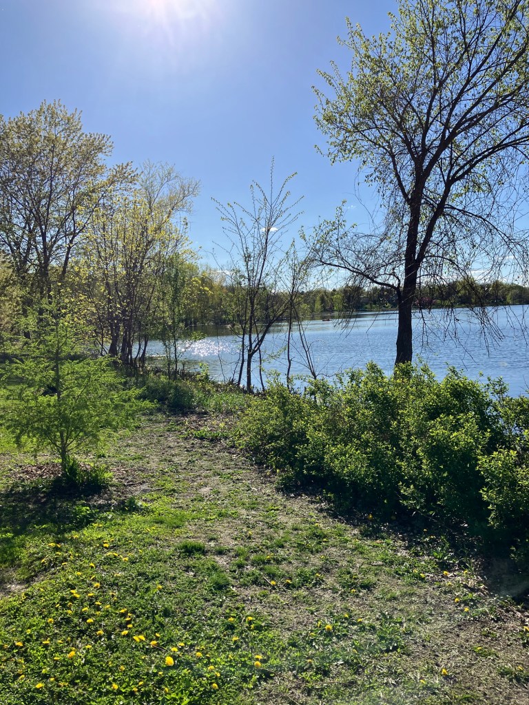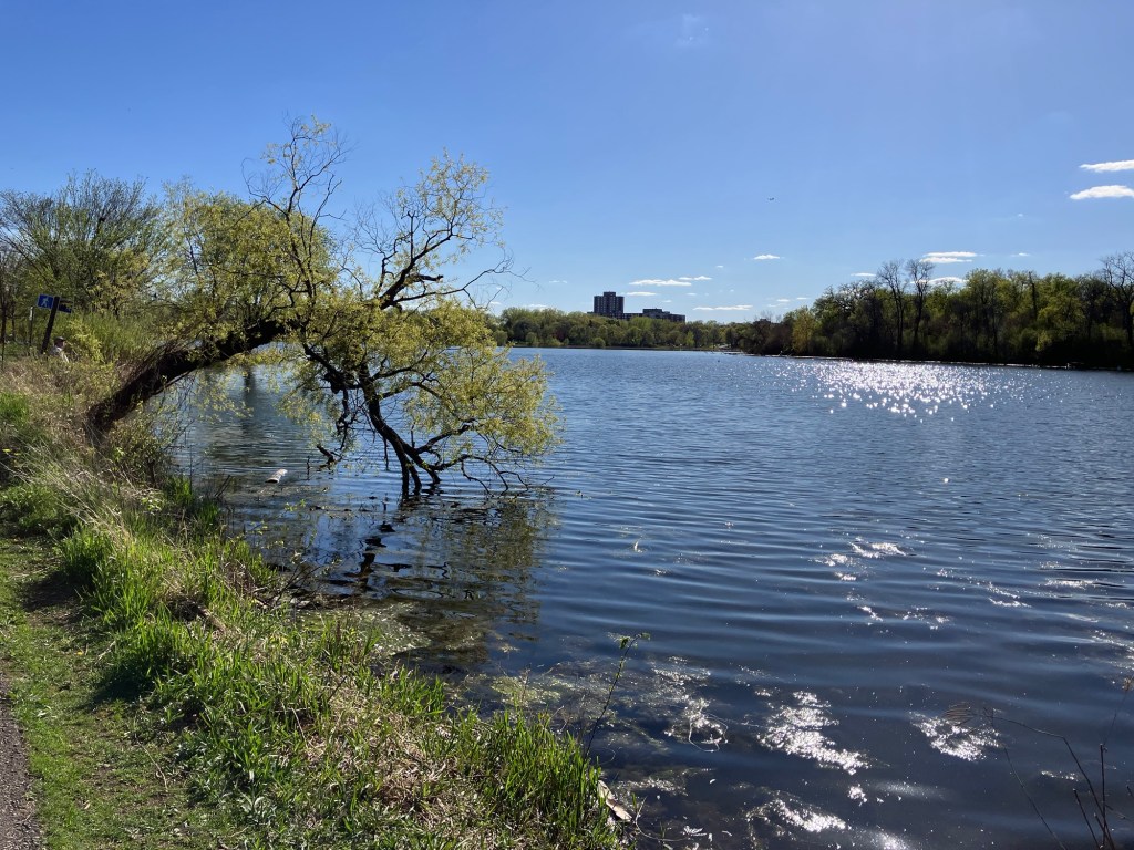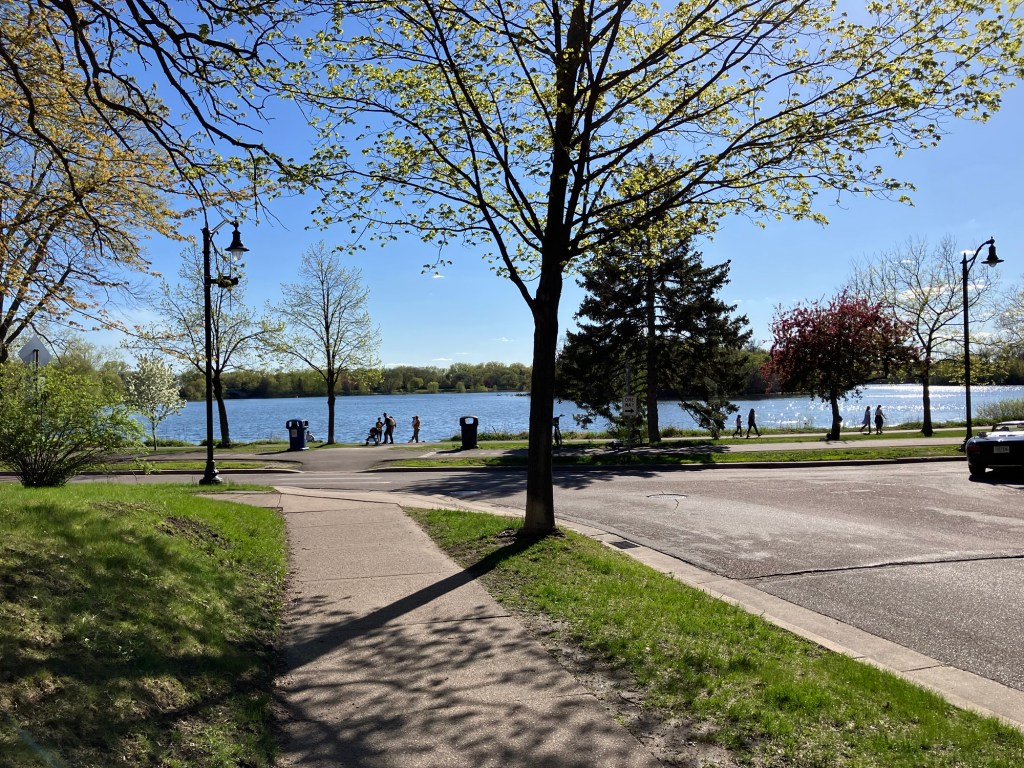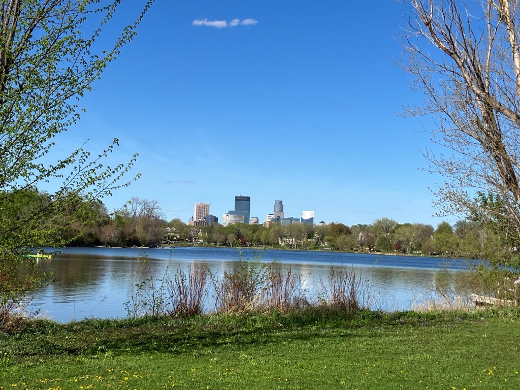 Lake of the Isles in (Minneapolis) is a beautiful lake in the heart of Uptown. This lake is rich in shoreline, if not tree cover, with bike and walking paths winding along the lobes of the lake. The park is mostly surrounded by houses but features a lovely view of the Minneapolis skyline and connects to neighboring Cedar Lake and Bde Maka Ska in Minneapolis’ “Chain of Lakes.” With 2.7 miles of paved walking trail, this lake is a good site in the city to take a long and picturesque walk with a stroller for tired young legs!