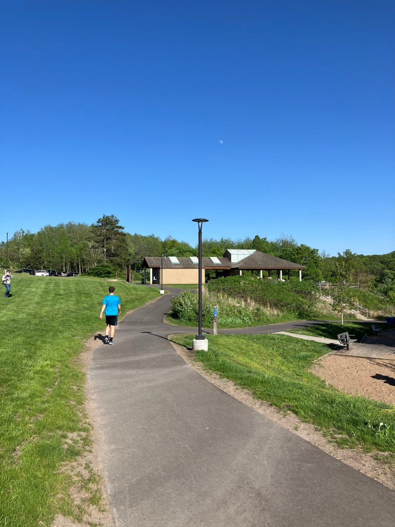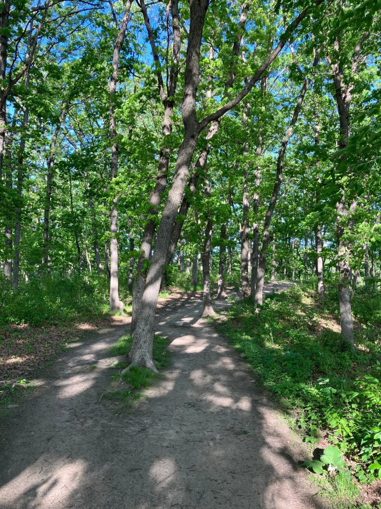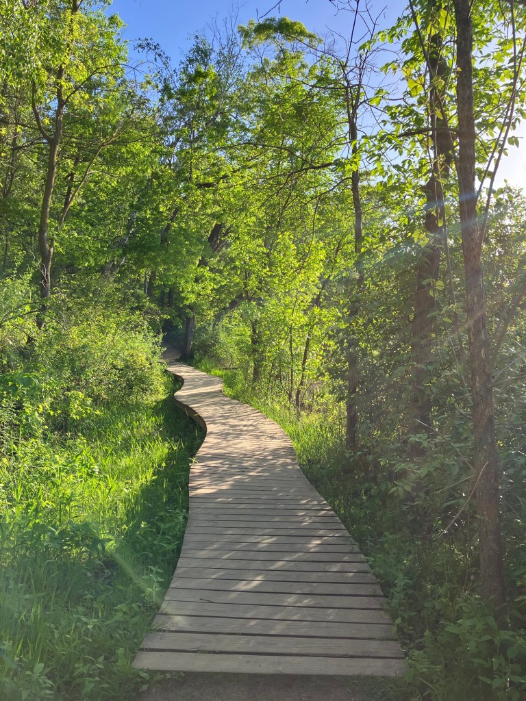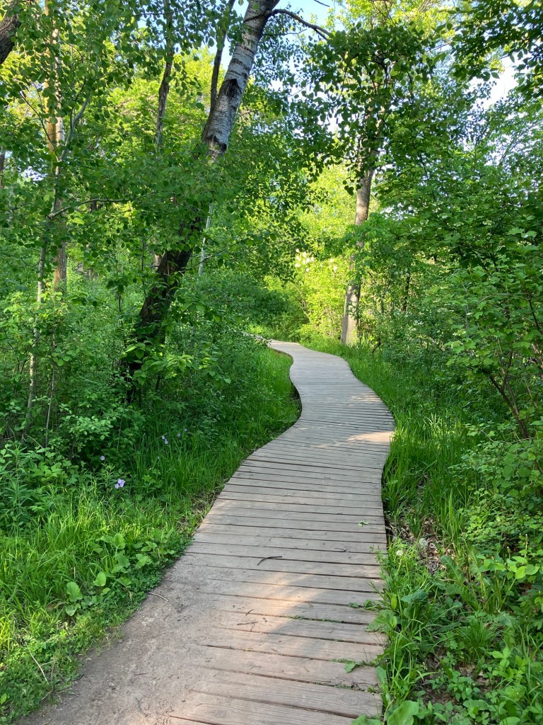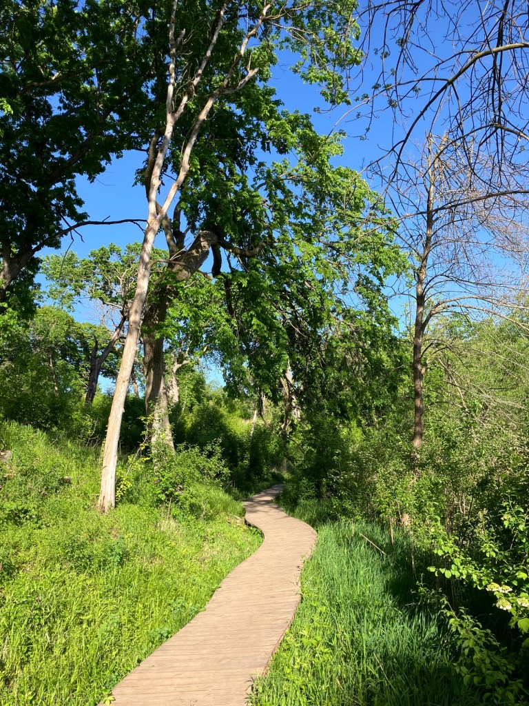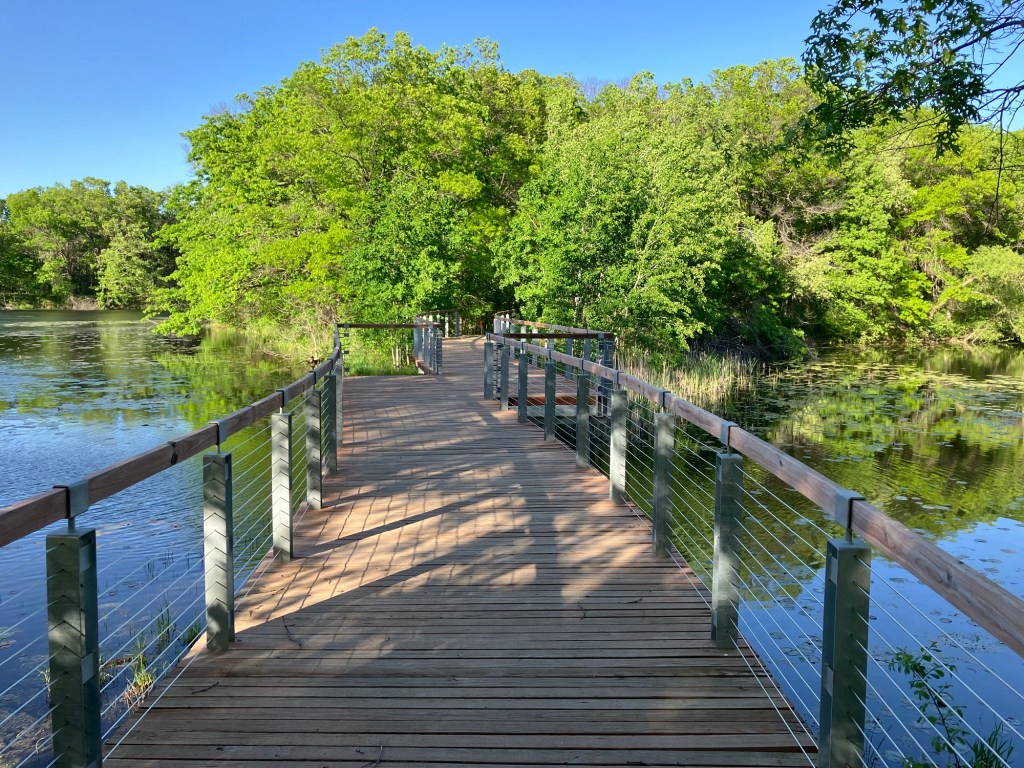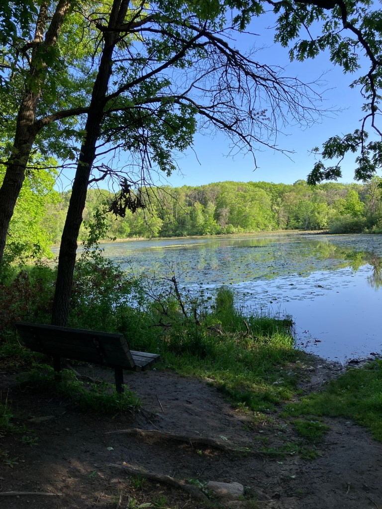 Jensen Lake is in a small western section of Lebanon Hills Regional Park in Eagan, MN. Here you can find a tiered playground near the parking lot along side a scenic overlook picnic shelter. Head down the trail from the busy park area and find a lower picnic overlook before beginning a trail loop around Jensen Lake. Unless you can read a map well, be sure to stick on the path closest to the lake or you may find yourself wandering through an extensive trail system through Lebanon Hills. Take time to enjoy the sunlight on the water, the activity of busy muskrats, and the joy of a beautifully-winding trail!