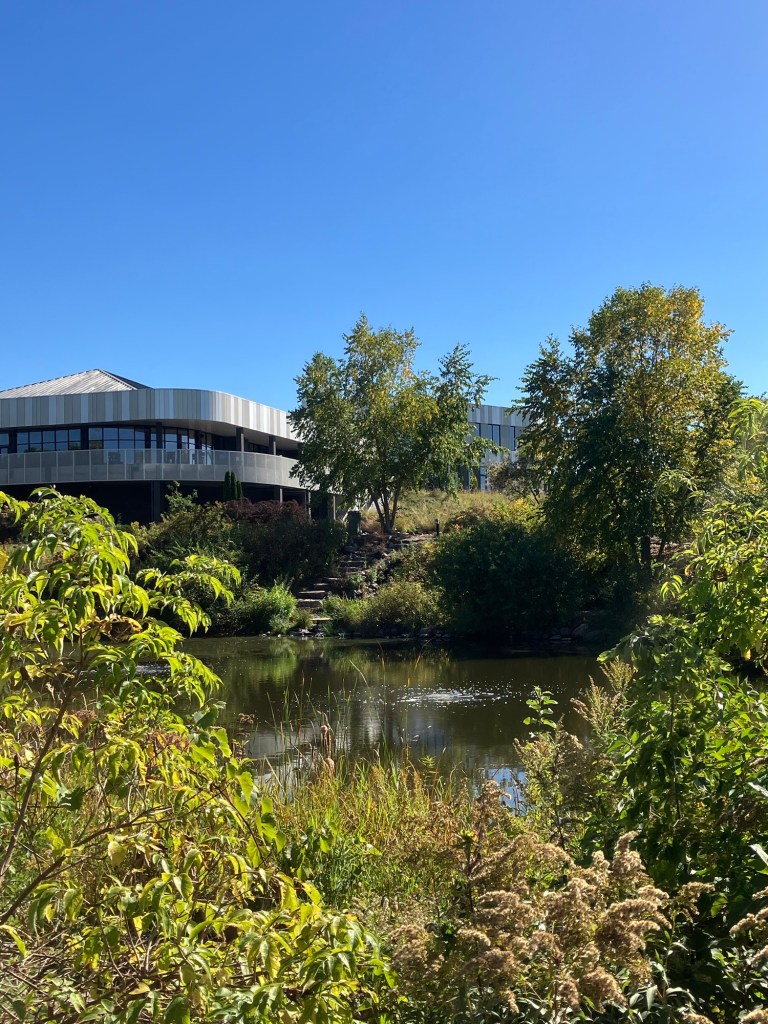This park off of the Plymouth Community center is so scenic that it’s a popular wedding venue, but there’s plenty to take in without accidentally dropping into someone’s event photos. From the upper deck of the community center, you can view much of the garden and surrounding wetland before descending to the ground level. Follow looping paths around water gardens, trees, and flowers. Wind along the stony path to the center of the labyrinth or explore the trail west to the neighboring Hilde Performance Center! Be advised that the gravel path through the trees can be very difficult to push a stroller though, and there are areas with steps that a stroller would have to pass by.