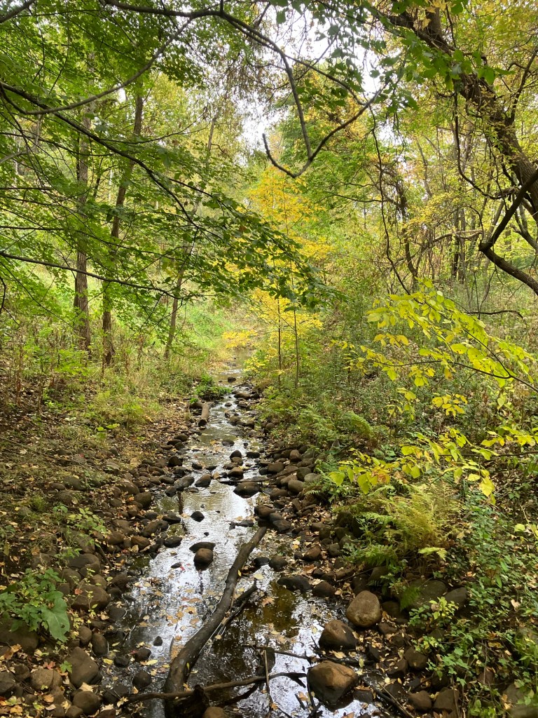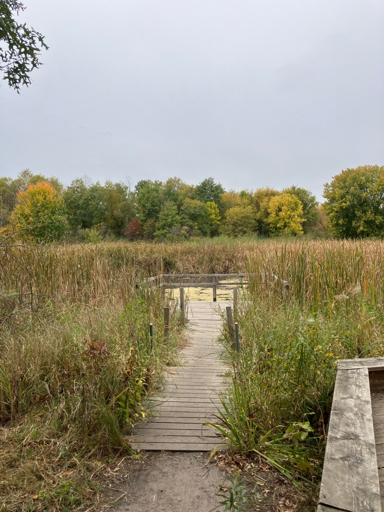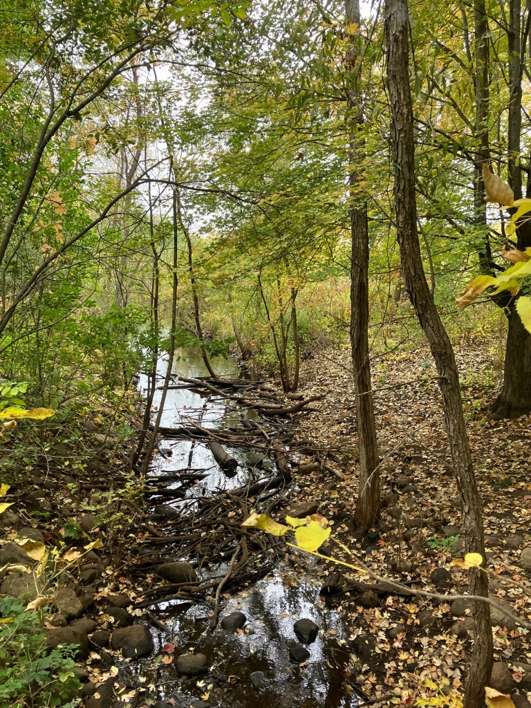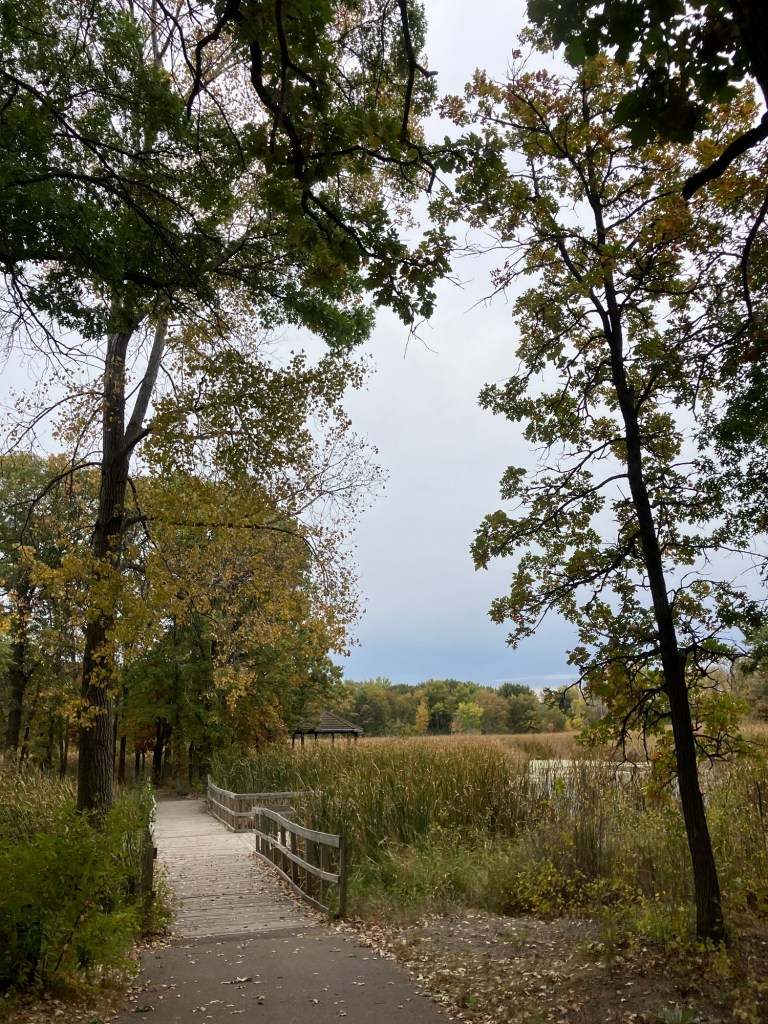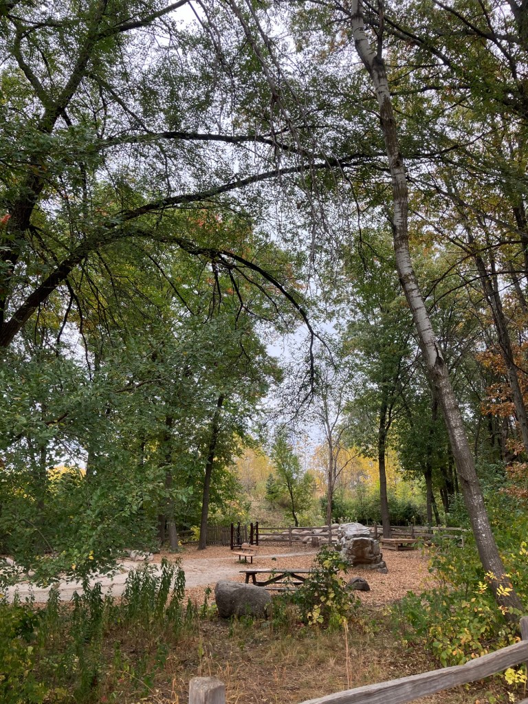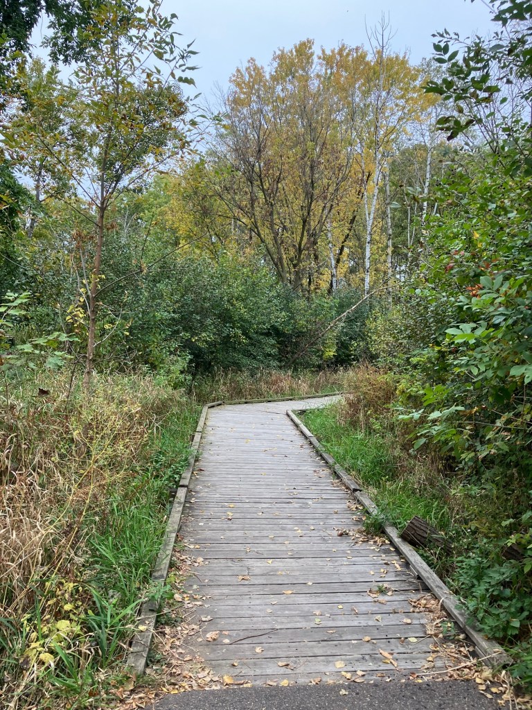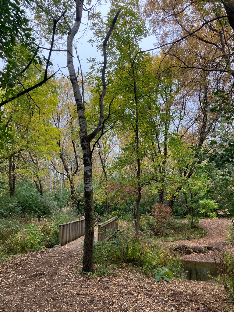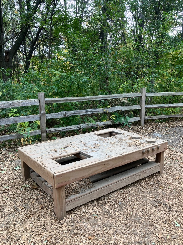 Springbrook Nature Center in Fridley, MN features a network of neat woodland trails connecting to marshy boardwalks, allowing walks of any duration. There are many scenic benches and other places to rest. Running water and bridges abound and the park celebrates its population of beavers who sculpt these waterways. These theme is further explored in the park’s renovated nature playground that is a must-stop in the north metro.