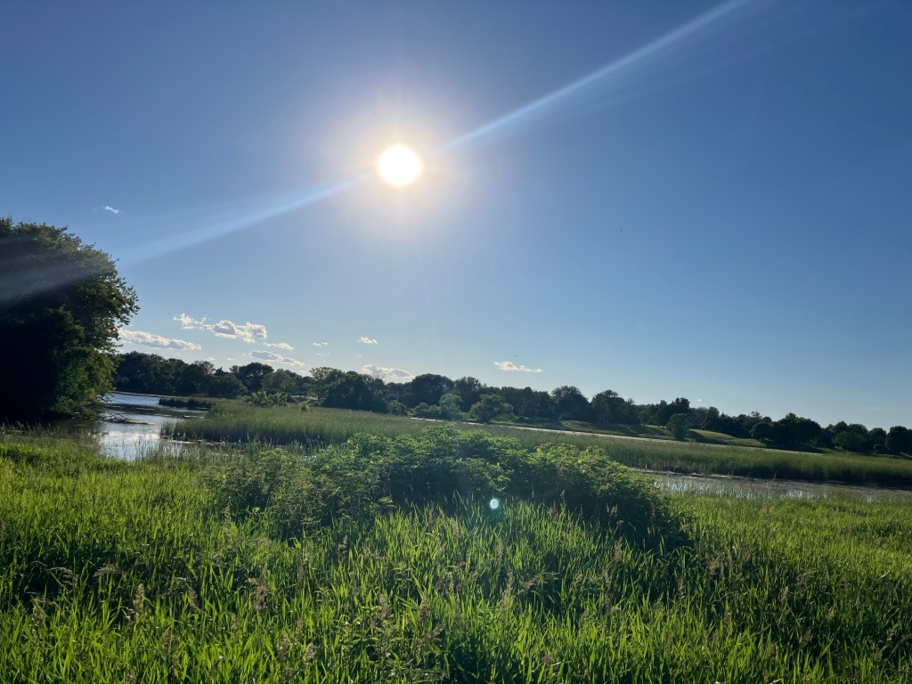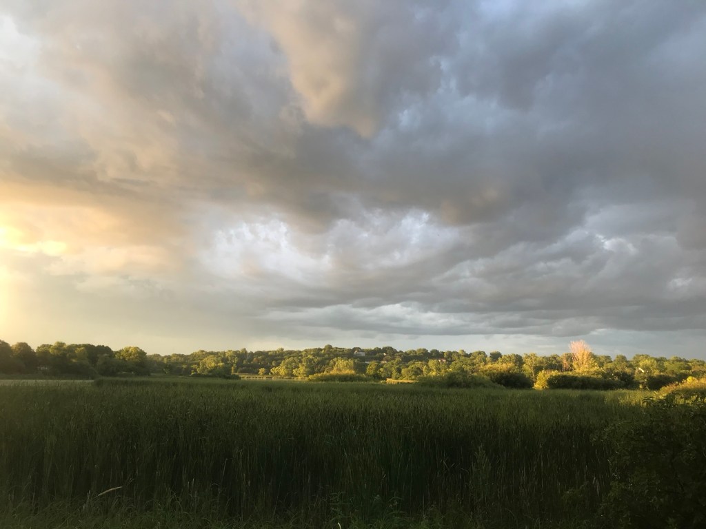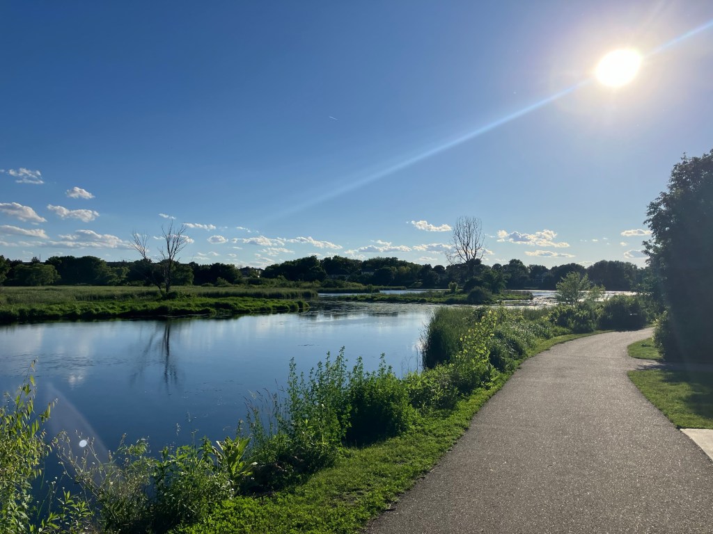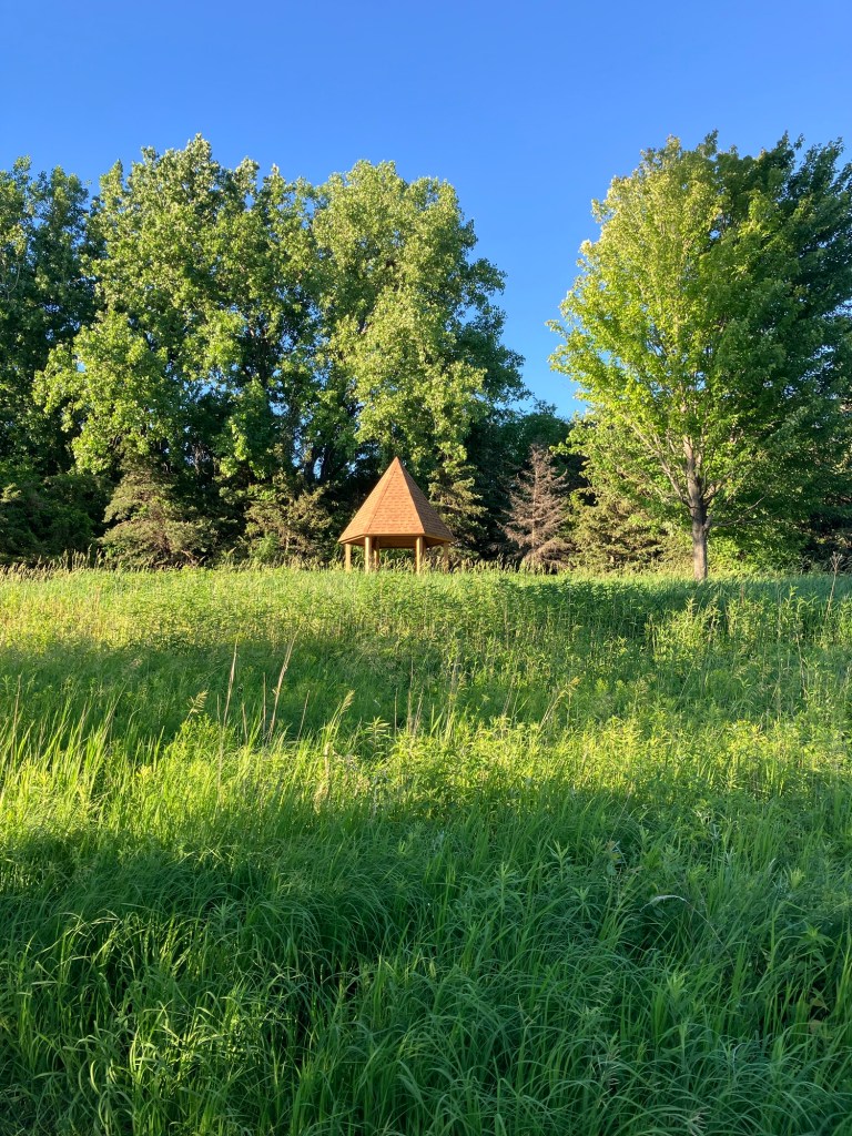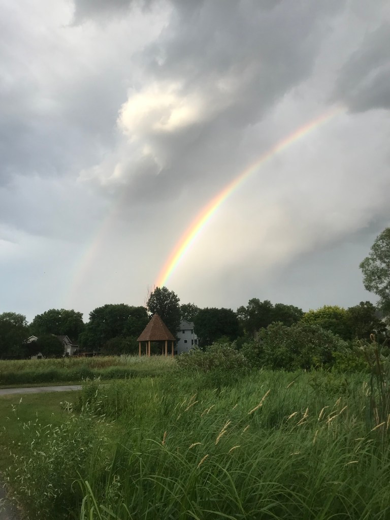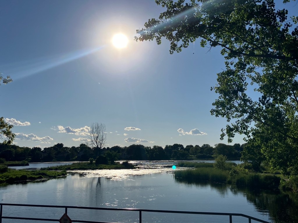 Sunset Pond Park is a large and aptly-named pond in Burnsville, Minnesota. A winding trail and prairie grasses separate the curvy pond from neighborhood backyards on two sides. A playground and corporate building cap the southeast and southwest corners of the pond and a trail at the north end leads through the woods on a beautiful path that will take you to nearby Canterbury Park and beyond! A small trail east at the north end takes you up to the road across a set of abandoned train tracks (we’re certain they’re well out of use due to the trees growing through them).