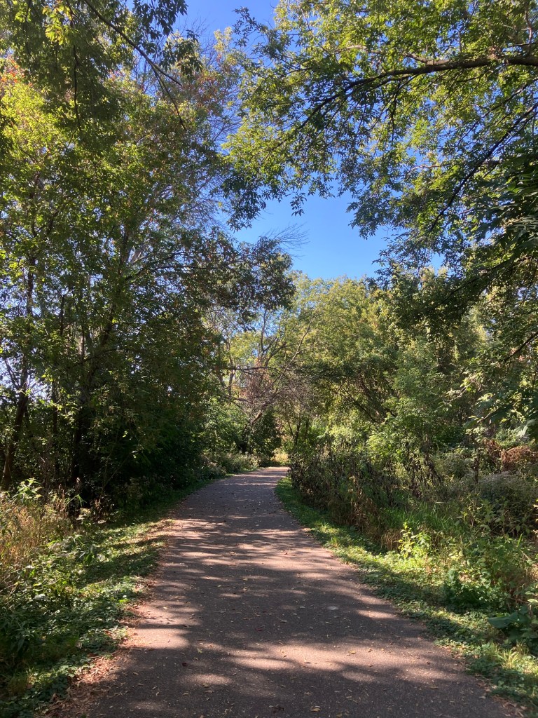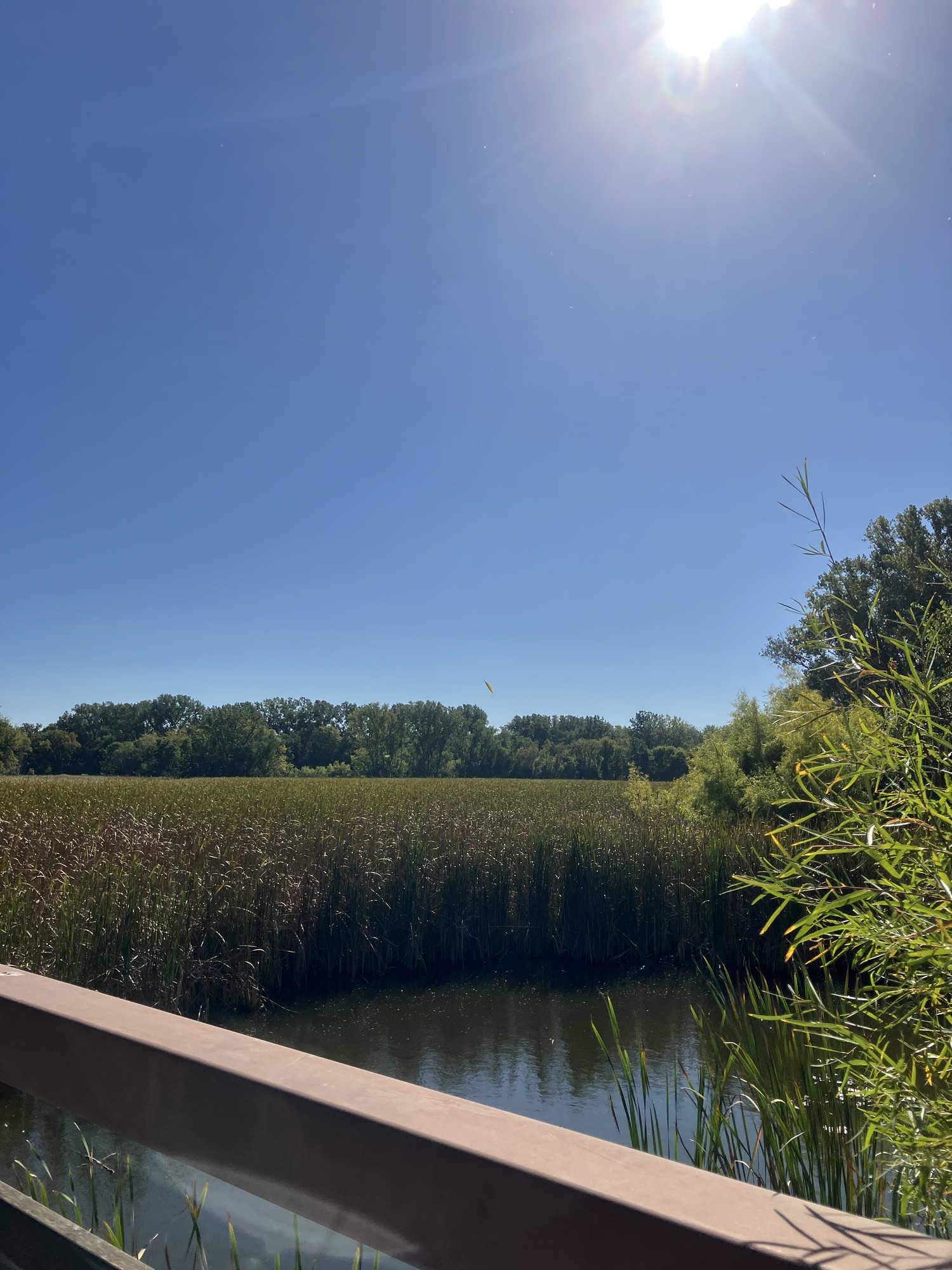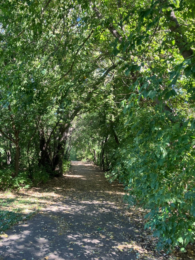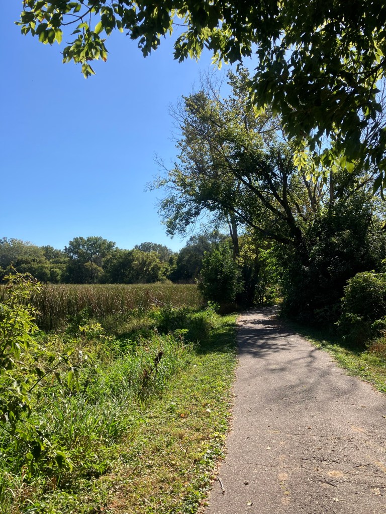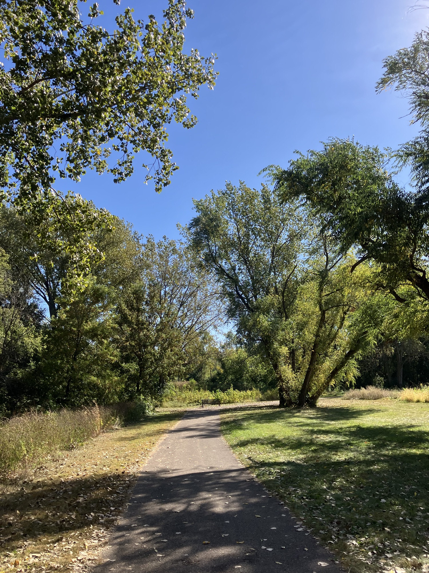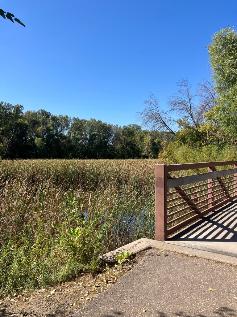Veteran’s Park is a rather large park in Richfield, MN. It’s home to a large outdoor aquatic center, a miniature golf course, an ice arena, a playground, a farmer’s market, and a bandshell a fair bit of the visible park space is plain green grass spotted with trees… but the bulk of the park is occupied by legion lake, with tree-shaded trails circling around and between the lake and marsh. Be advised that Google Maps and Apple Maps both show a trail leading directly through the heart of the marsh. I’ve found the head and tail that suggest that this path may have existed in the past, but it certainly does not now. If you’ve wandered through this park confused, you’re far from the only one. The paths that do exist are lovely. Even though the north loop around the marsh passes quite close to Highway 62, the woods are dense enough along that edge that, in summer, cars are seldom within sight and sounds are reasonably muted. The marsh is beautiful and it’s well worth the loop. Some of the paths do get a little choppy, (which I assume is the effect of time on efforts to pave marshy trails) but should be passable for most strollers.