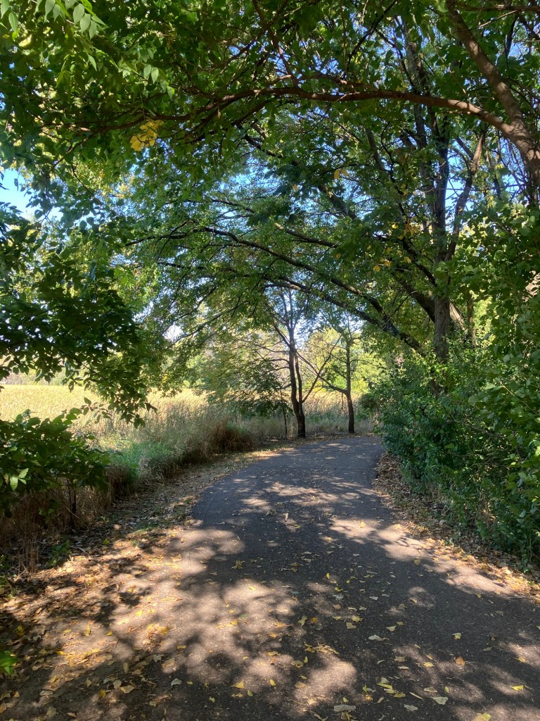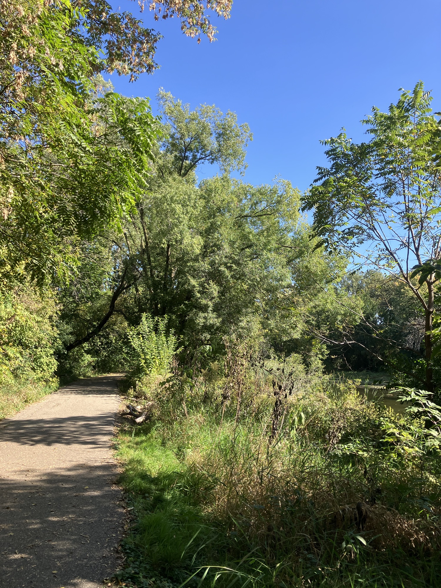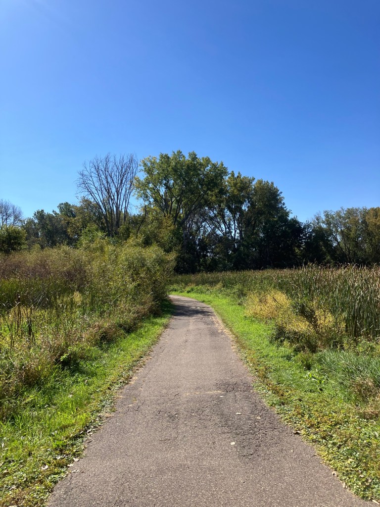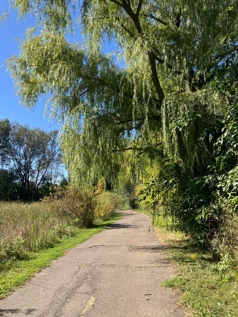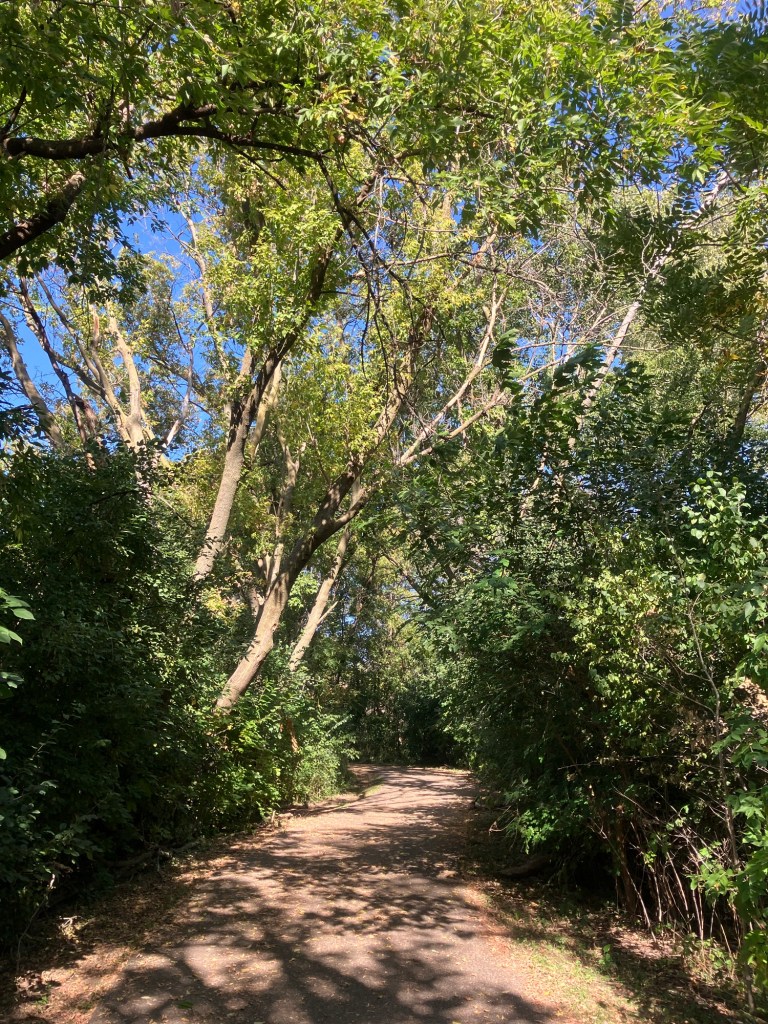 Veteran’s Park is a rather large park in Richfield, MN. It’s home to a large outdoor aquatic center, a miniature golf course, an ice arena, a playground, a farmer’s market, and a bandshell a fair bit of the visible park space is plain green grass spotted with trees… but the bulk of the park is occupied by legion lake, with tree-shaded trails circling around and between the lake and marsh. Be advised that Google Maps and Apple Maps both show a trail leading directly through the heart of the marsh. I’ve found the head and tail that suggest that this path may have existed in the past, but it certainly does not now. If you’ve wandered through this park confused, you’re far from the only one. The paths that do exist are lovely. Even though the north loop around the marsh passes quite close to Highway 62, the woods are dense enough along that edge that, in summer, cars are seldom within sight and sounds are reasonably muted. The marsh is beautiful and it’s well worth the loop. Some of the paths do get a little choppy, (which I assume is the effect of time on efforts to pave marshy trails) but should be passable for most strollers.
