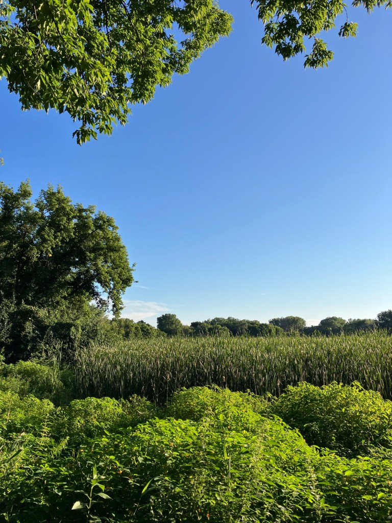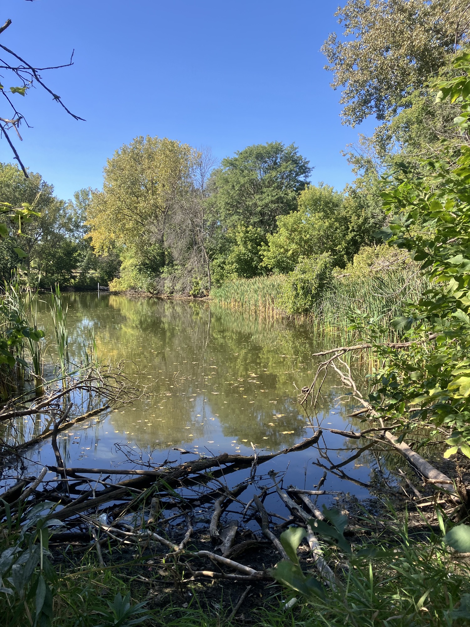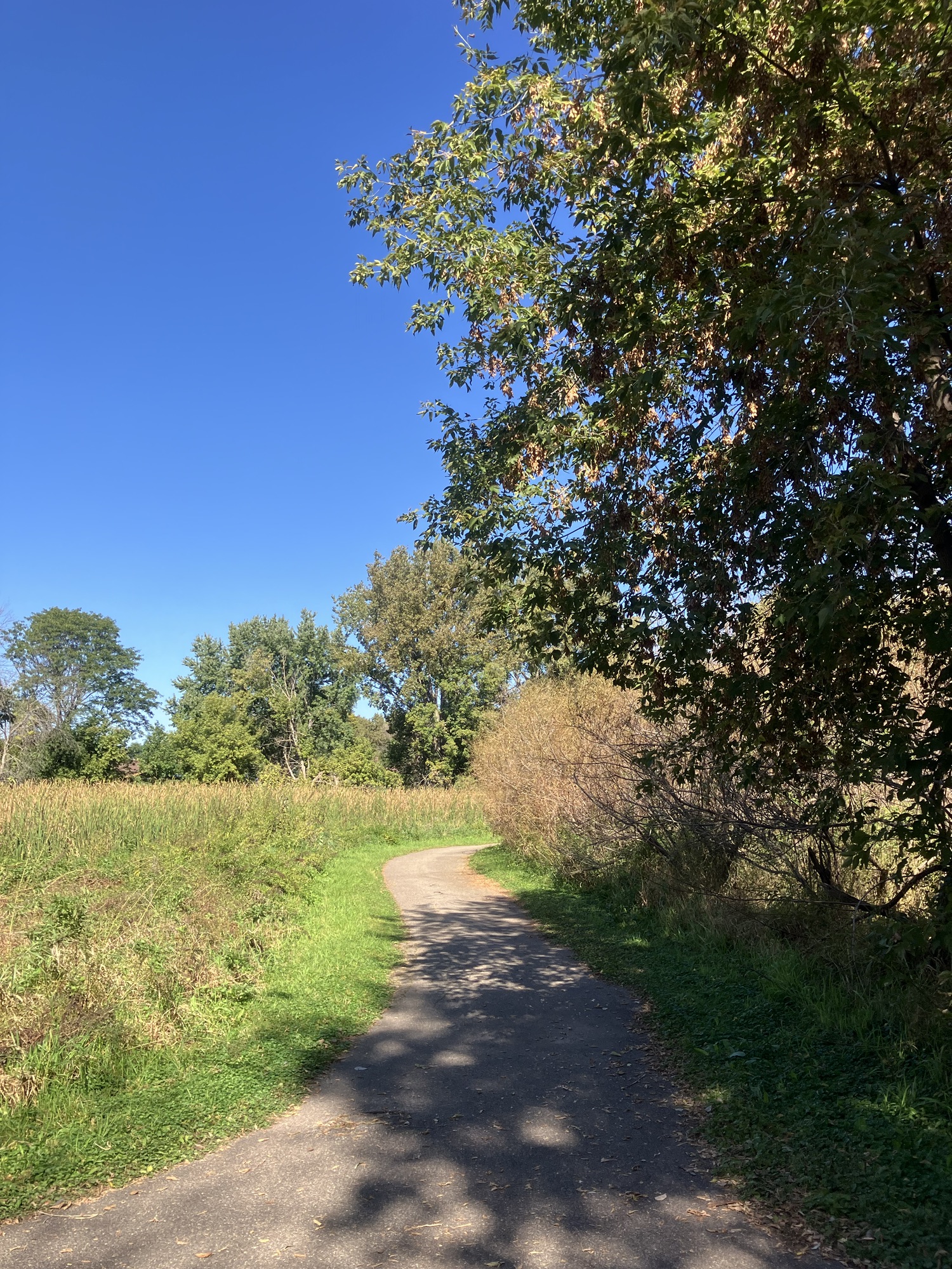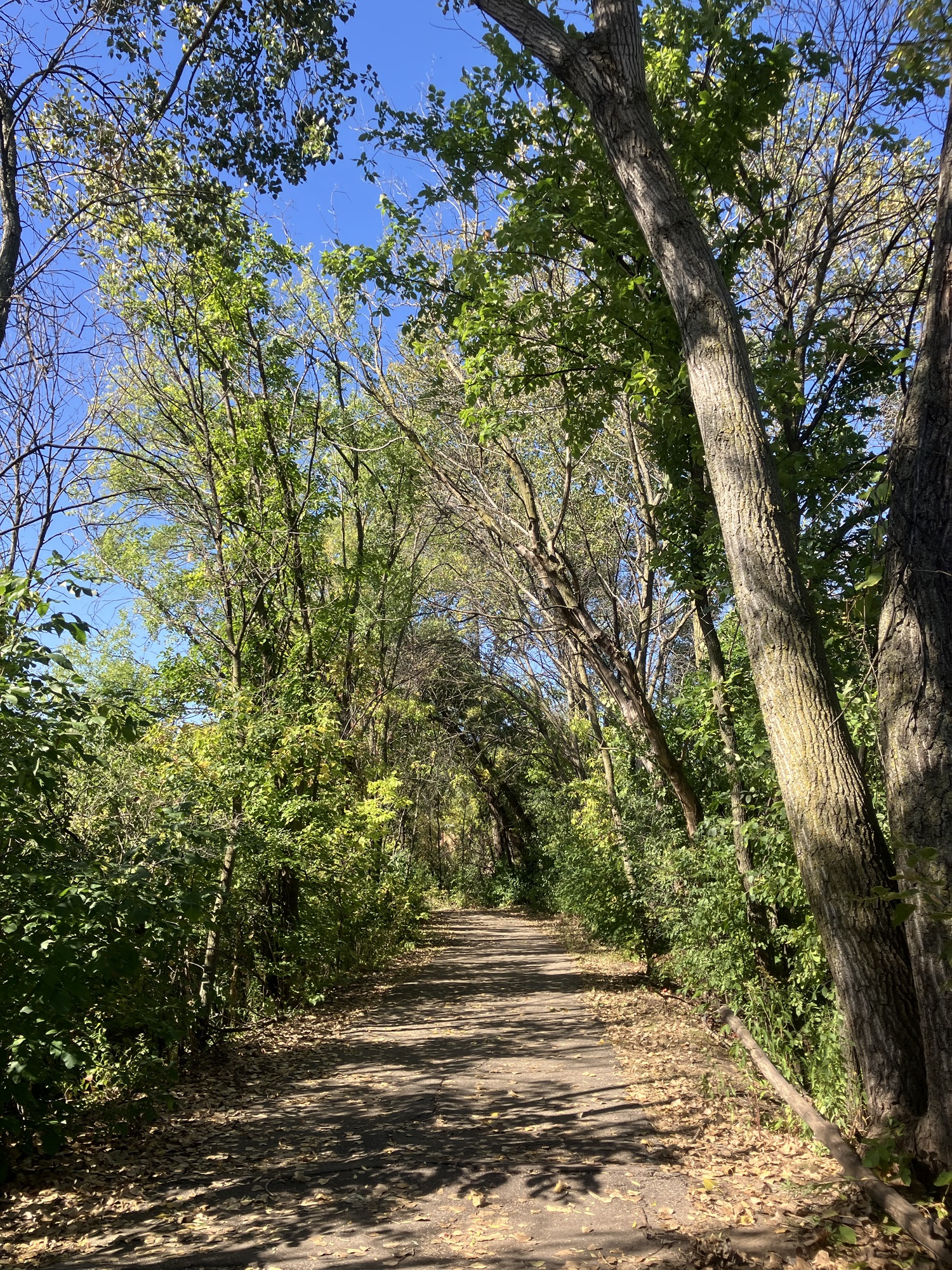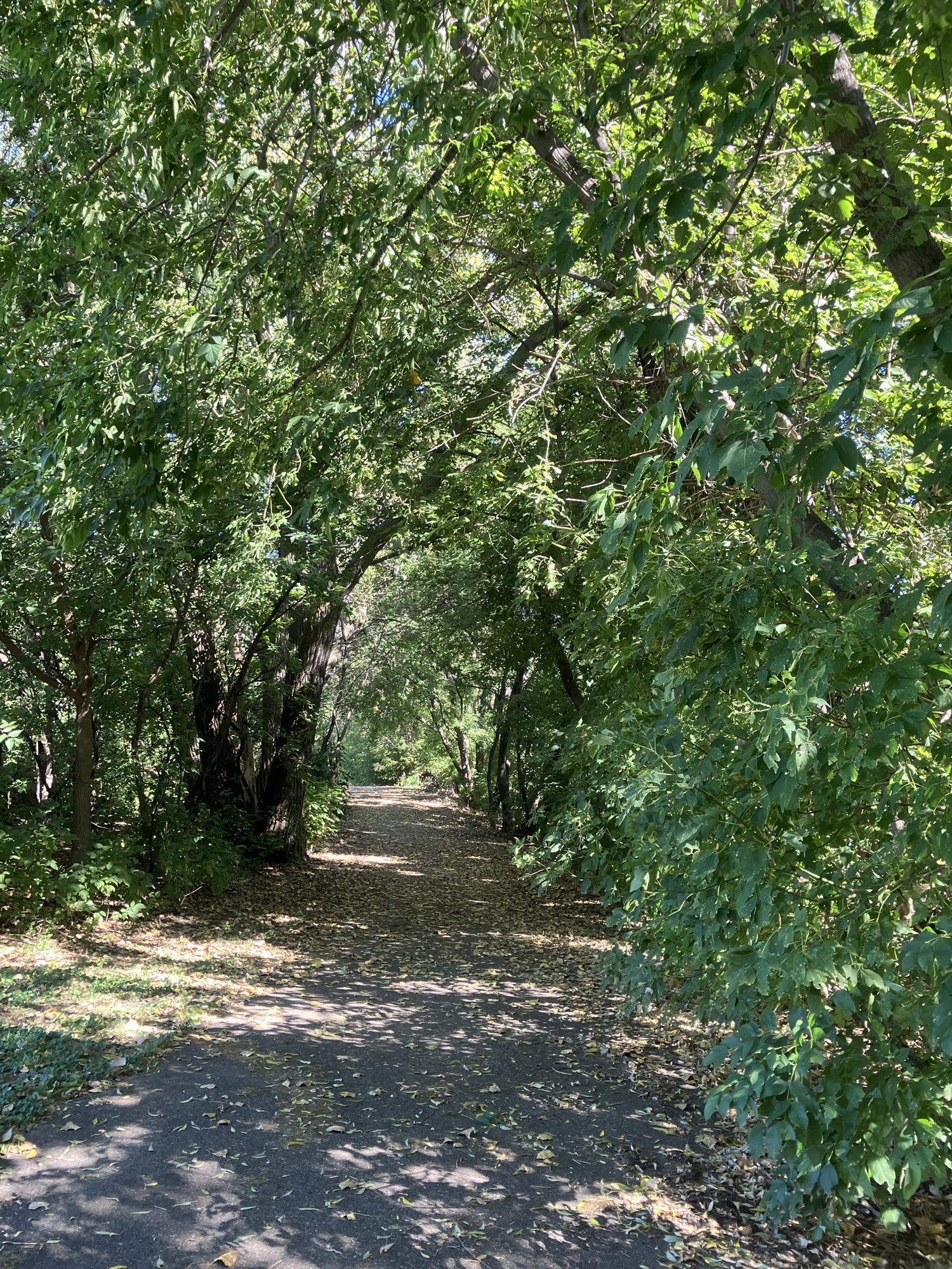Veteran’s Park is a rather large park in Richfield, MN. It’s home to a large outdoor aquatic center, a miniature golf course, an ice arena, a playground, a farmer’s market, and a bandshell a fair bit of the visible park space is plain green grass spotted with trees… but the bulk of the park is occupied by legion lake, with tree-shaded trails circling around and between the lake and marsh. Be advised that Google Maps and Apple Maps both show a trail leading directly through the heart of the marsh. I’ve found the head and tail that suggest that this path may have existed in the past, but it certainly does not now. If you’ve wandered through this park confused, you’re far from the only one. The paths that do exist are lovely. Even though the north loop around the marsh passes quite close to Highway 62, the woods are dense enough along that edge that, in summer, cars are seldom within sight and sounds are reasonably muted. The marsh is beautiful and it’s well worth the loop. Some of the paths do get a little choppy, (which I assume is the effect of time on efforts to pave marshy trails) but should be passable for most strollers.