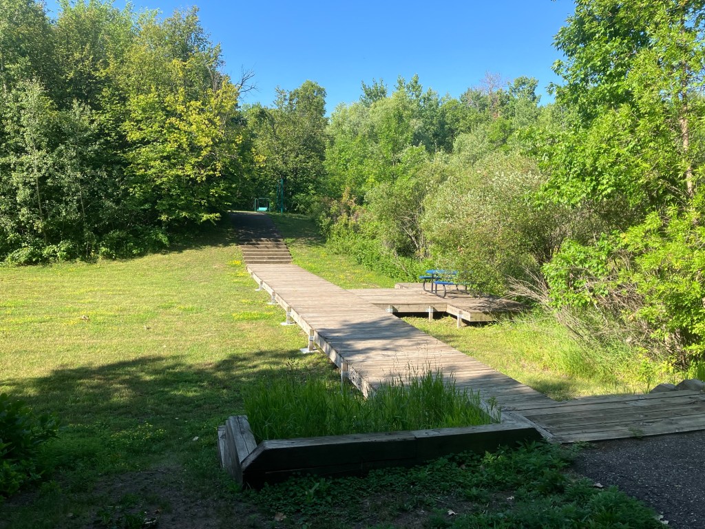 Woodland Trails Park is a hidden gem of the West Metro, perfect for taking young toddlers on early hikes. Tucked between housing developments with street parking, this park has several short loops through a small wood with space enough for a stroller. You’ll also find a small playground clearing, a picnic clearing with a scenic pond view, and three bench swings, and a trail with a peek-through view of nearby train tracks. Be certain to pack appropriate bug spray—the trails are well-shaded at any time of day!